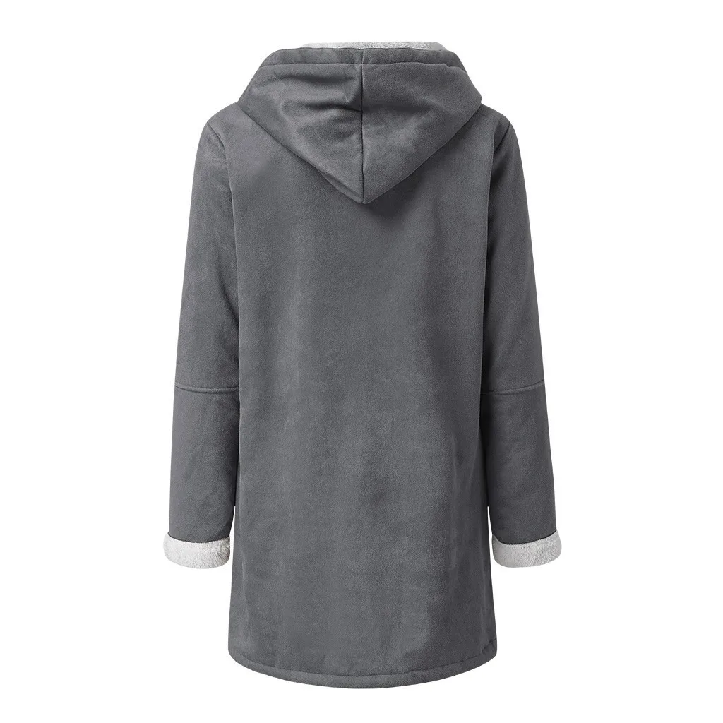 Женский зимний с карманами длинный рукав с капюшоном плюшевый свитер Повседневная куртка пальто