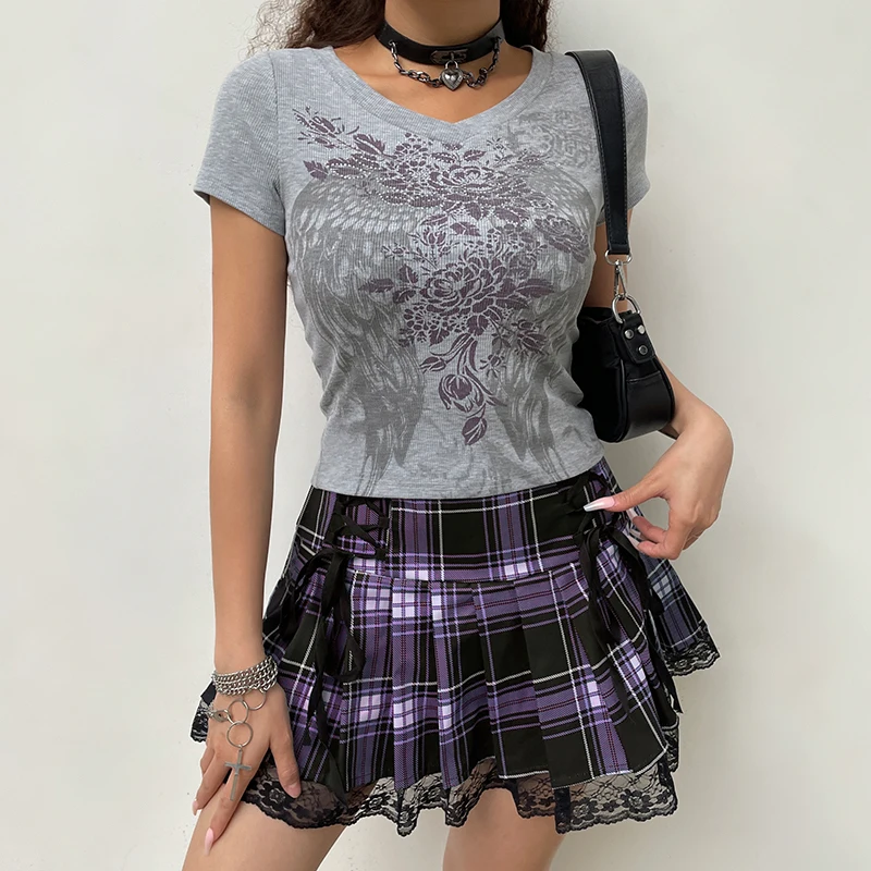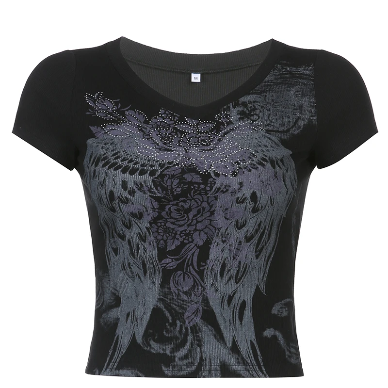 Darlingaga Ретро Fairycore печатные Y2K Графические футболки женские модные тонкие Темные академические укороченные топы шикарные гранж осенние детские футболки