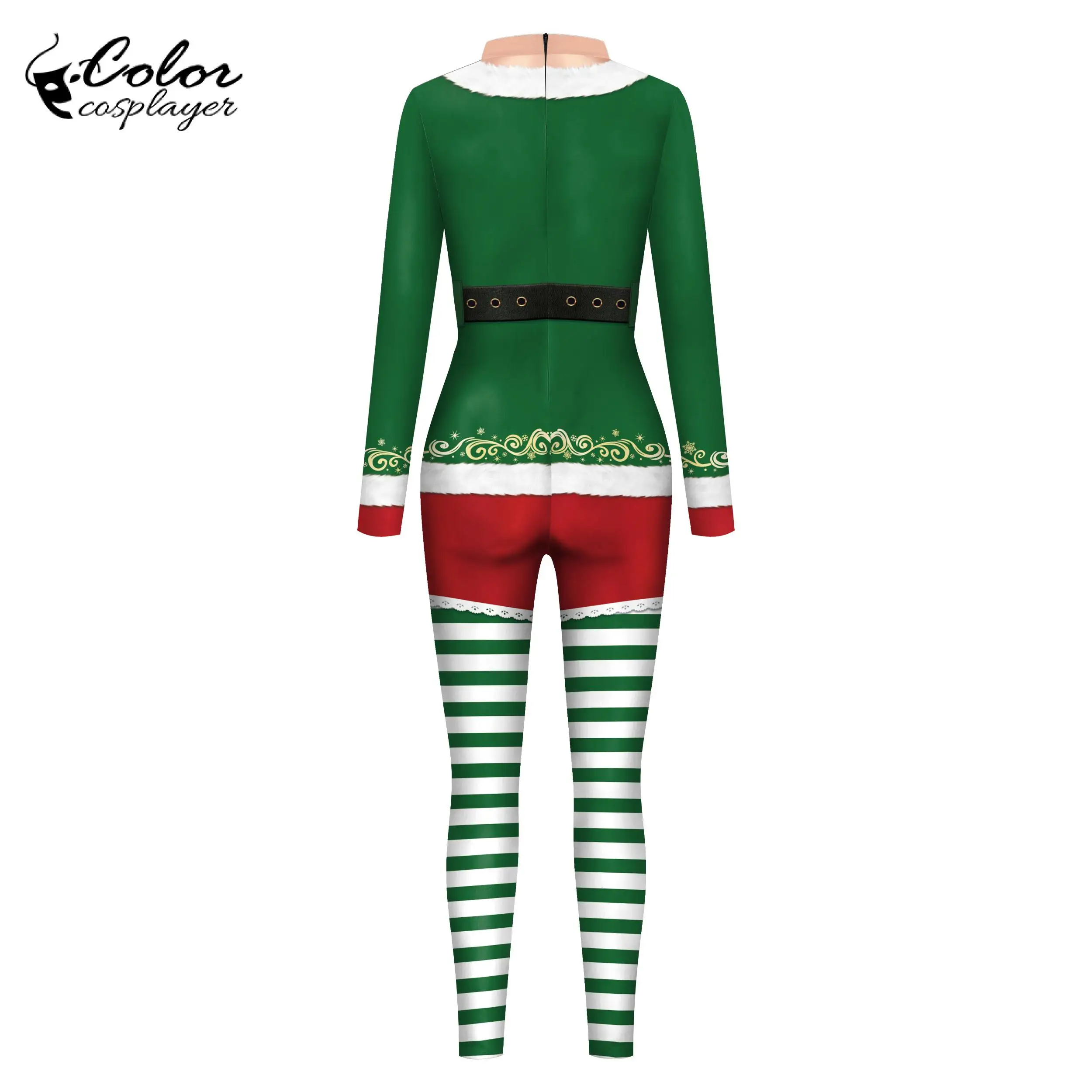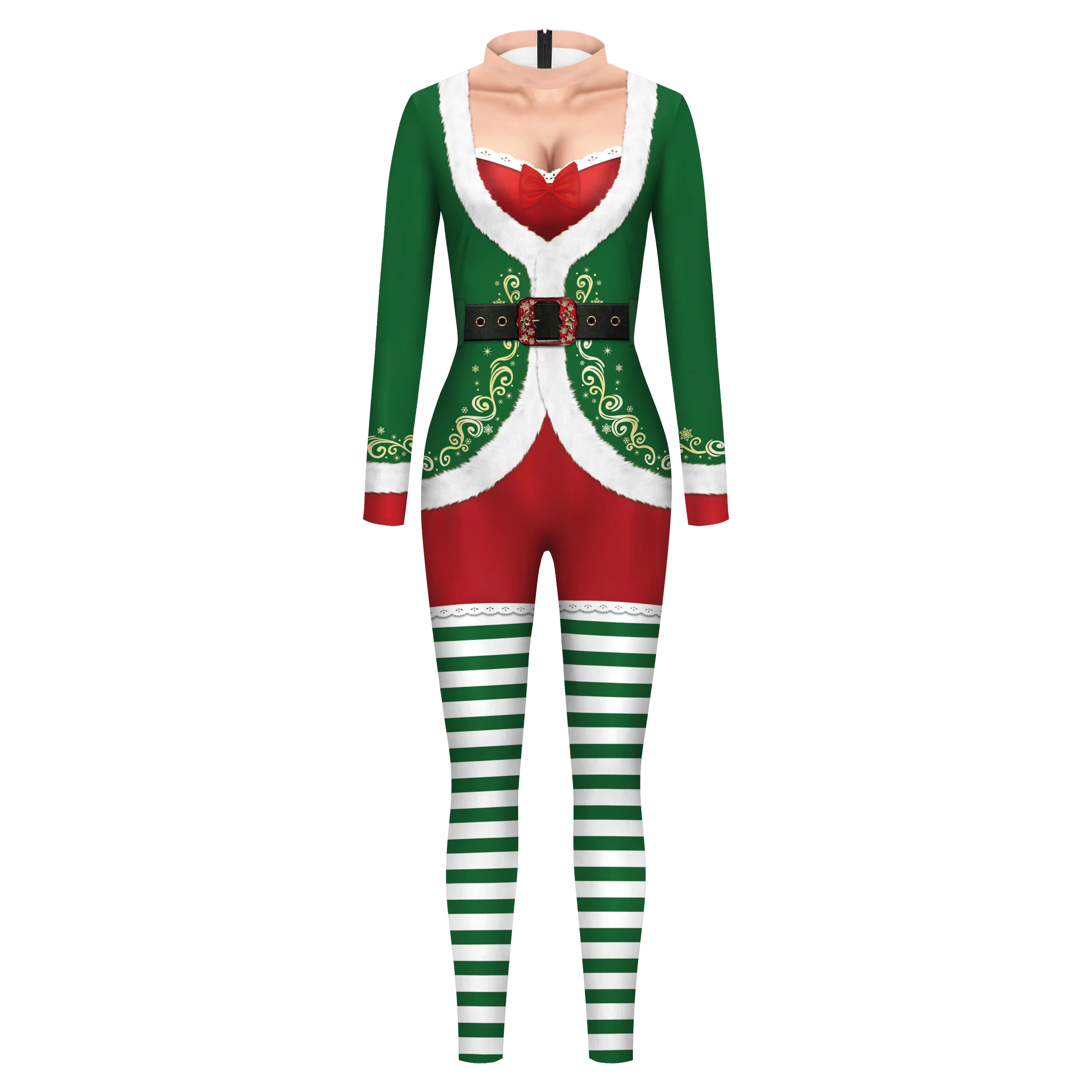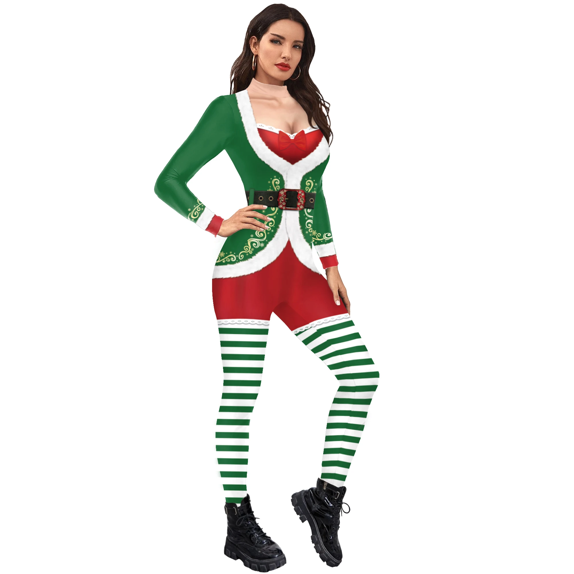 Рождественский Карнавальный костюм для косплея, имитация двух зеленых и белых полос, 3D цифровая печать, женские сексуальные наряды, зеленый Боди