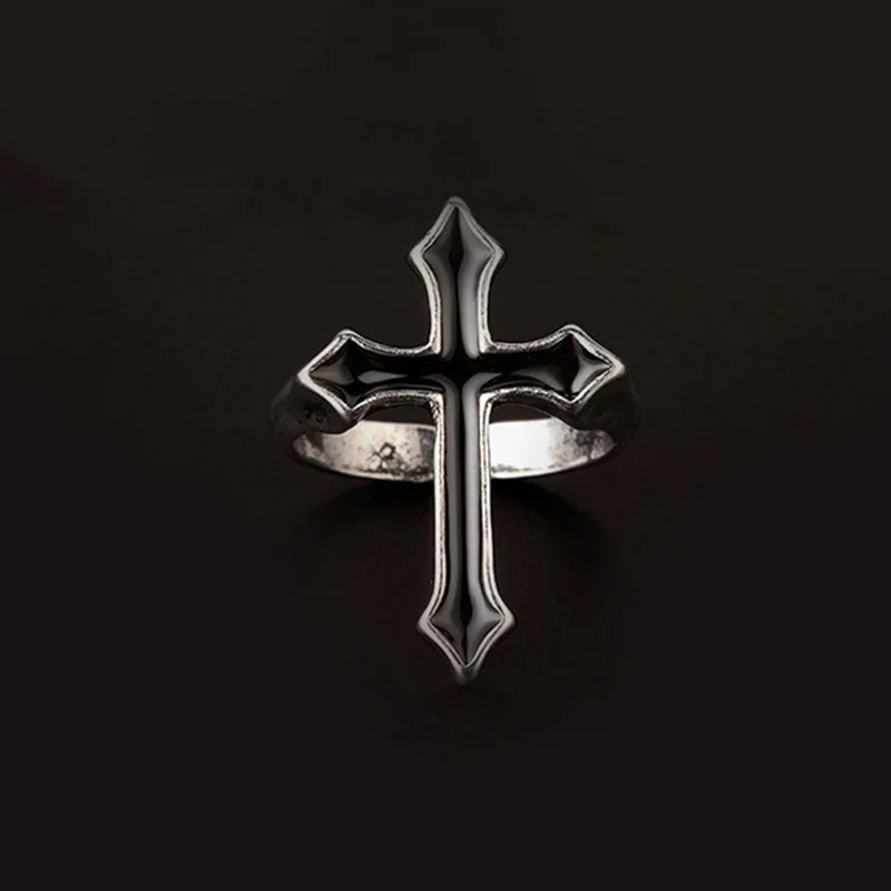 1 шт. винтажное черное большое открытое кольцо с крестом для женщин...