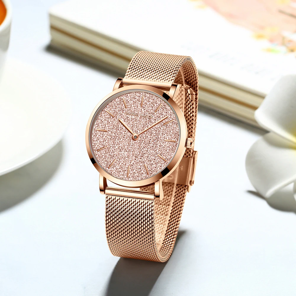 Часы женские из нержавеющей стали под розовое золото с браслетом