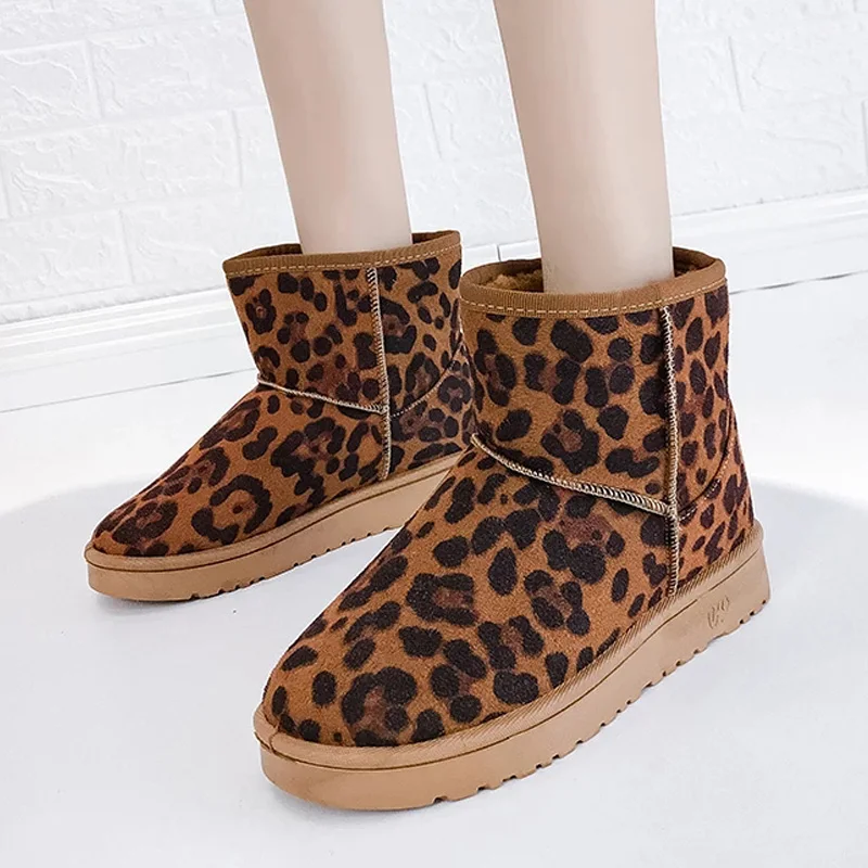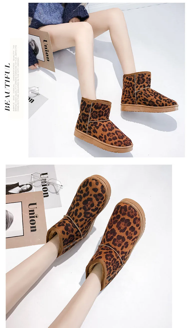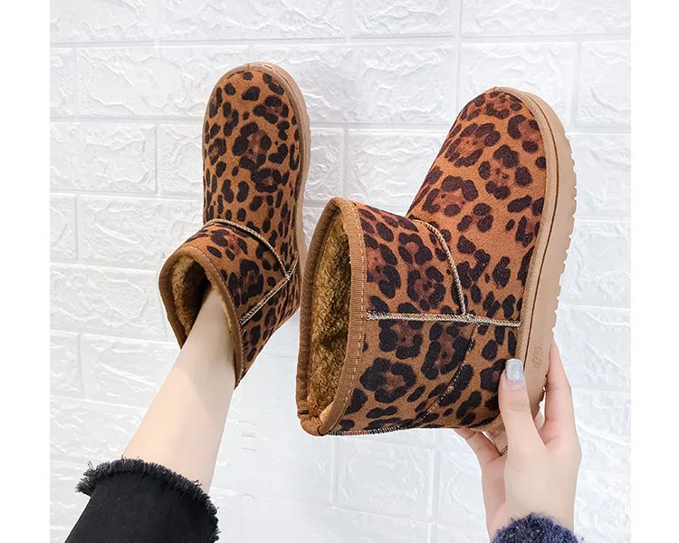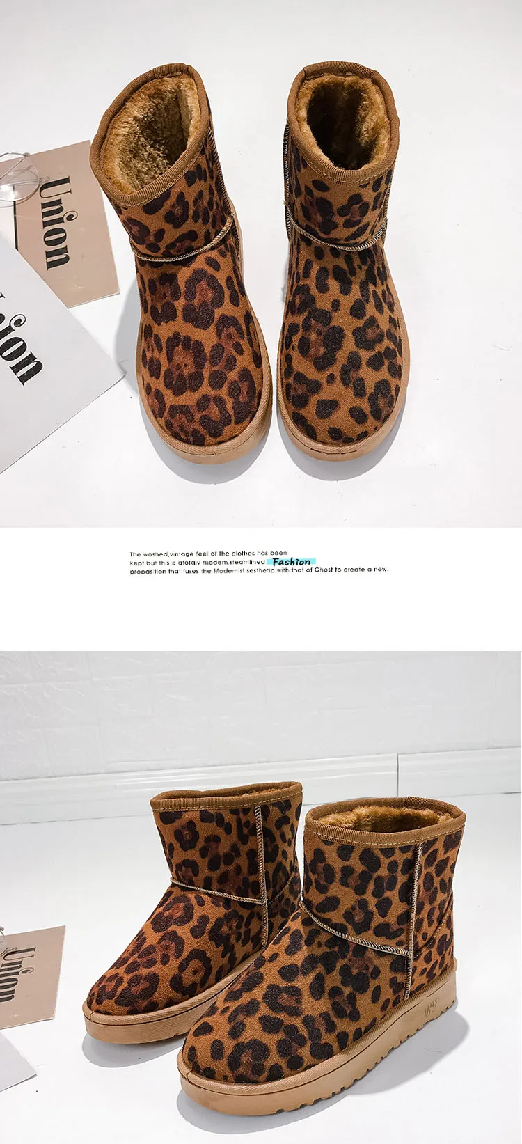 Женские зимние ботинки в австралийском стиле; Зимние Теплые ботильоны для женщин; Зимние ботинки с леопардовым принтом без застежки; Женская плюшевая обувь; Большие размеры