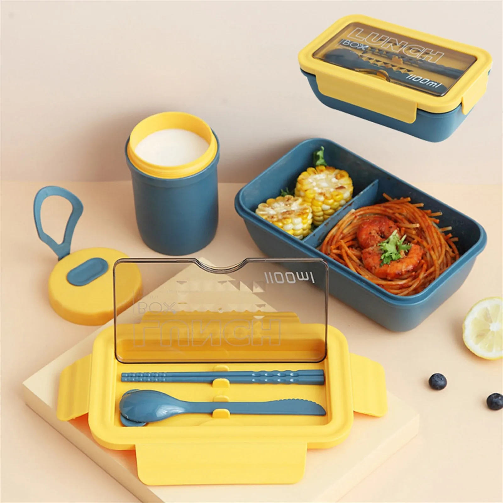 1100 мл Ланч-бокс для микроволновой печи, портативный 2-уровневый п...