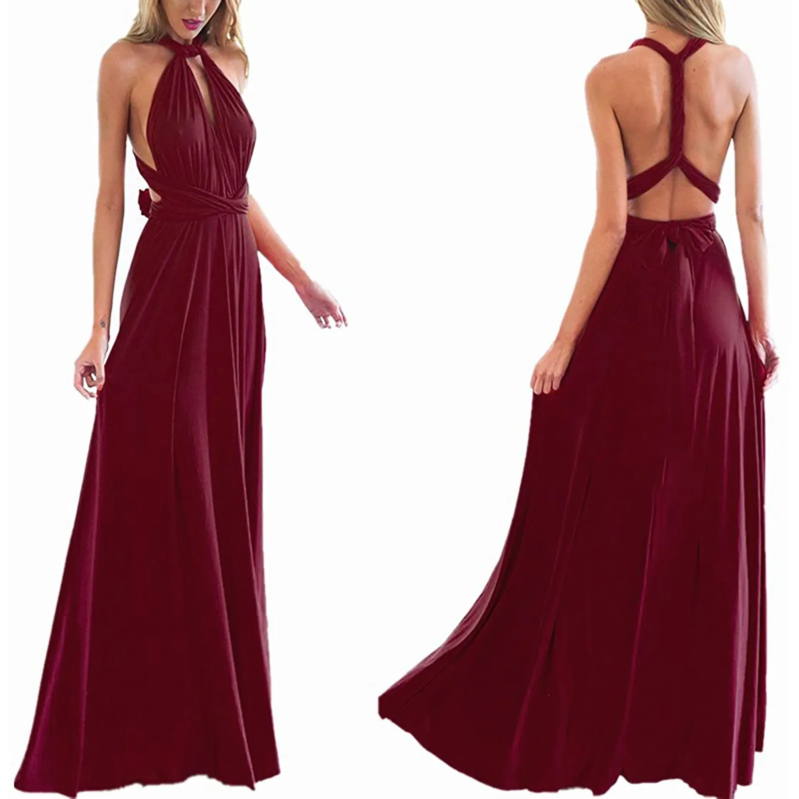 Платье женское вечернее без рукавов, пикантный длинный сарафан с лямкой на шее, с запахом, с открытой спиной, для свадьбы, подружки невесты, лето-осень