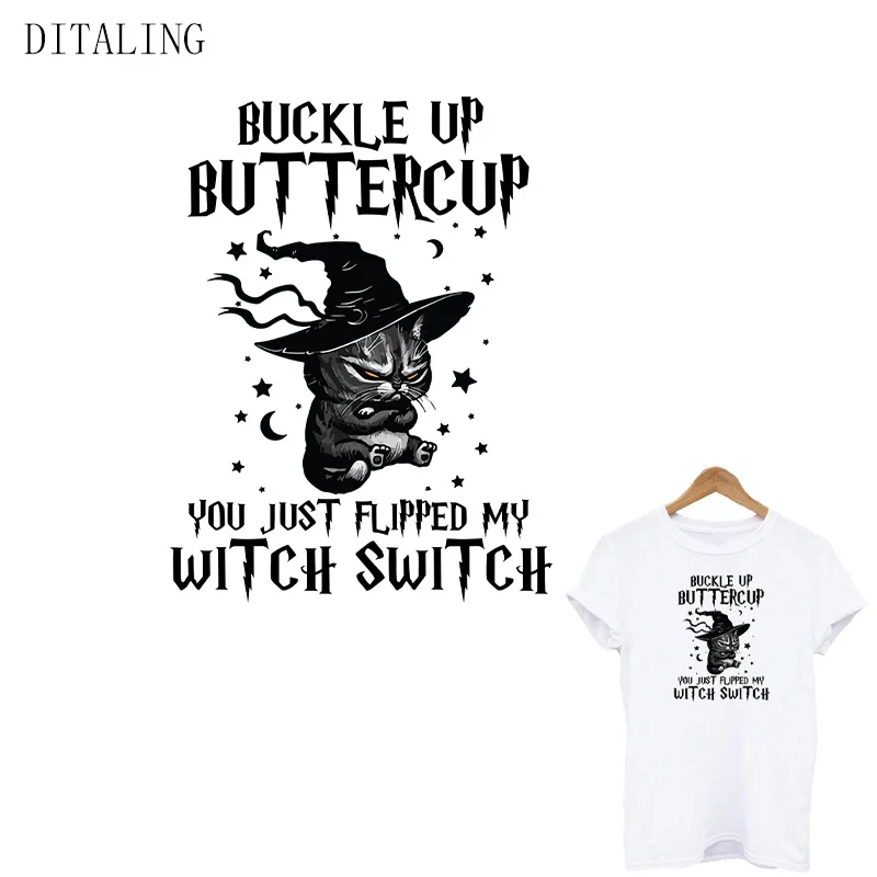 Крутая кошка, наклейка на одежду, нашивки на Хэллоуин, сделай сам, моющаяся футболка с переводными картинками, толстовка, забавные животные, термонаклейки, аппликация