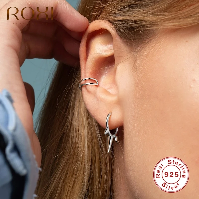 Женские блестящие серьги-кольца ROXI с заклепками, модные серьги из стерлингового серебра 925 пробы для девушек и женщин, ювелирные украшения, серьги из золота 925 пробы