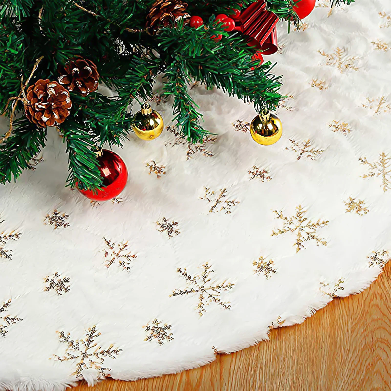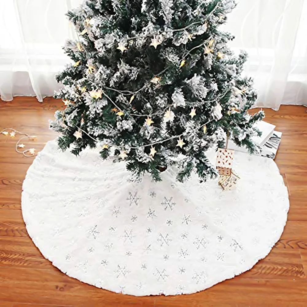 Белая юбка в виде рождественской елки, золотистая, серебристая, снежинка, украшение, легкая, удобная, мягкая, плюшевая на дерево, юбка, Рождественский Декор