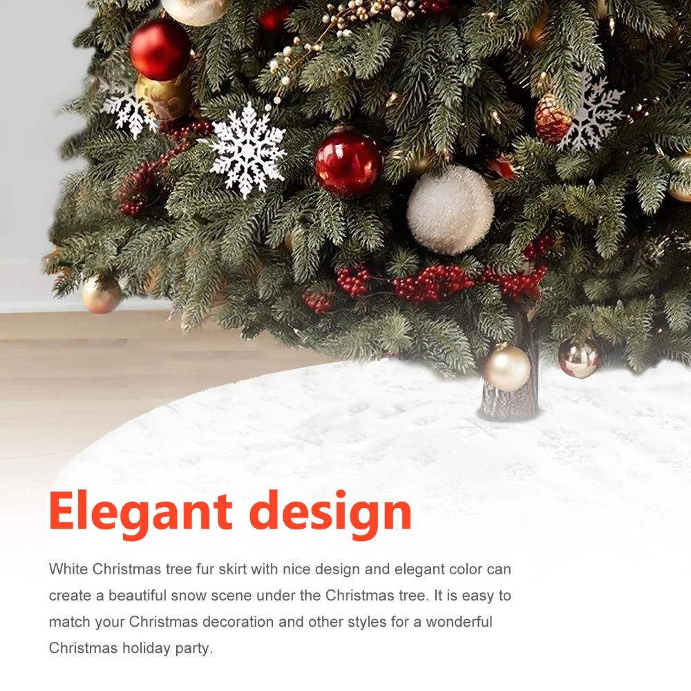 Белая меховая юбка с рождественской елкой с красивым дизайном и элегантным цветом может создать красивую снежную сцену под елкой. Легко сочетать с вашим рождественским украшением и другими стилями для замечательных рождественских праздников, вечерние.