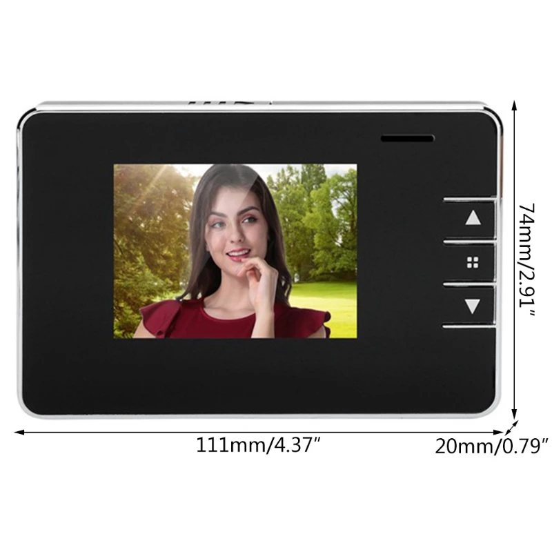 OOTDTYОсобенности на 100% абсолютно новый и высокого качестваДневная и Ночная глазок камеры. Камера видео-звонка может использоваться как днем, так и ночью. Он контролирует Ваш дом в видео ультра высокой четкости с инфракрасным ночным видением и живым обзором, обеспечивает наблюдение за всеми видами деятельности. Он также имеет Экстра Широкий угол обзора 120 градусов, что позволяет покрыть каждый угол. С технологией ночного видения, чтобы продлить ваш дом в течение 24 часов.Простая установка. Вы можете настроить до 3 минут без использования каких-либо сложных инструментов. Оцинкованный сплав устойчив к посторонним контактам, защита от кражи и разблокировка глазок камеры. 4 шт. батарейки AAA. Примечание: батарейки в комплект не входят!Умный дверной звонок. Фотографируйте; Записывайте видео; Функция дверного звонка. 2,8 ''TFT экран высокой четкости. Поддержка 12 языков; 3 мелодии звонка. Максимальная поддержка tf-карты 32G.Видео дверной звонок. Автоматические фотографии, видео. Домофон; Сенсорный ключ; Функция дверного звонка; Наружный блок; И т. Д.Фотографии высокого качества. С объективом высокой четкости; Поддержка 1280x720p; 1.3MP датчик изображения. Высокая чистота, белизна, оттенок, уменьшающая мощность и Диспергируемость, будет лучшим выбором для семьи. Позаботьтесь о своей семье и Уменьшите вред.Спецификация: Цвет: черныйМатериал: АБС + цинковый сплавДатчик изображения: 1.3MPНочное видение: 4 шт. x инфракрасные огниРазмер экрана: 2,8 дюймов ЖК-дисплей экранTF карта: максимальная поддержка 32GМелодии звонка: 3 типа мелодии звонкаПоддерживаемый язык: 12 видов языковАккумулятор: 4 батарейки AAA (не входят в комплект)Размер внутреннего монитора: прибл. 110x74x1 7 мм/4.33x2.91x0.66inНаружный глазок Диаметр камеры: прибл. 65 мм/2,56 дюймаПоддерживает двери Толщина: 40-100 мм/1,57-3.94inПоддерживает двери отверстие Диаметр: 15-60 мм/0,59-2.36inВес: прибл. 280 гПосылка включает в себя: 1 шт. внутренний монитор1 шт. глазок для камерыМеталлический кронштейн-1 шт.1 шт. руководство на английском языке1 Упаковка винтовПримечание: 1. Допускается погрешность в 0-1 см из-за ручного измерения. Пожалуйста, убедитесь, что вы не возражаете, прежде чем сделать ставку.2. В связи с разной конфигурацией разных мониторов изображение не отображает фактический цвет товара. Спасибо!