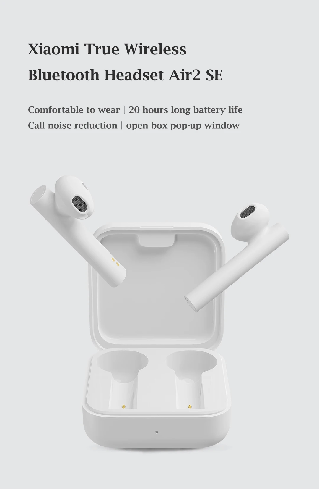 Беспроводная bluetooth-гарнитура Xiaomi True Air2Бренд: XiaomiМодель: TWSEJ02JYЦвет: белыйТип ношения: полуушныеМатериал: АБС-пластикВес нетто (г):50 гМикрофон: двойной микрофонВерсия Bluetooth: V5.0Расстояние передачи:>10 мДекодирование аудио: LHDC/ SBC/ AACСопротивление: 32 ОмВремя зарядки (ч):1 чВремя работы (ч):4 чВремя работы в режиме ожидания (ч):14 ч