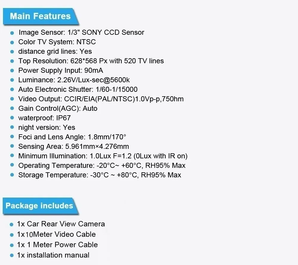 Тип сигнализацииВидеокамера заднего вида в автомобиле