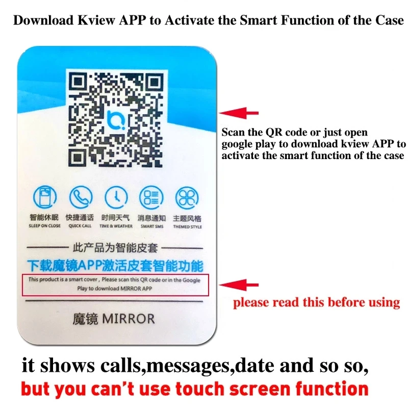 Step1: найти QR код карты от Розничная посылка (идут в комплекте чехол)Шаг 2: отсканируйте qr-код для загрузки и установки программного обеспечения для поддержки функции «Smart Wake Up», пожалуйста, предоставьте все права, необходимые приложению во время установки, если вы нажмете «Отклонить/не разрешить», приложение может не работатьШаг 3: Чехол хорошо работает.