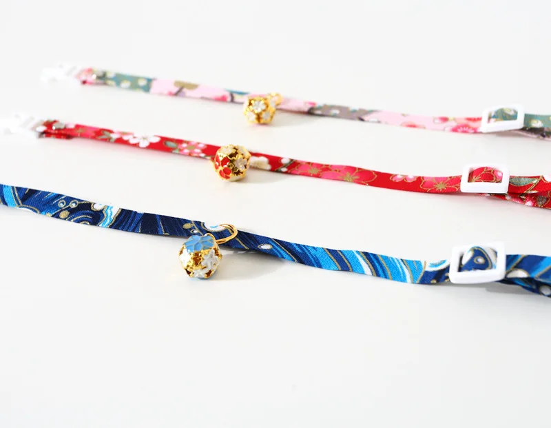 Регулируемый ошейник для питомцев в японском стиле с цветком, полый колокольчик, ошейник для кошек и собак, ошейник с кроликом, аксессуары