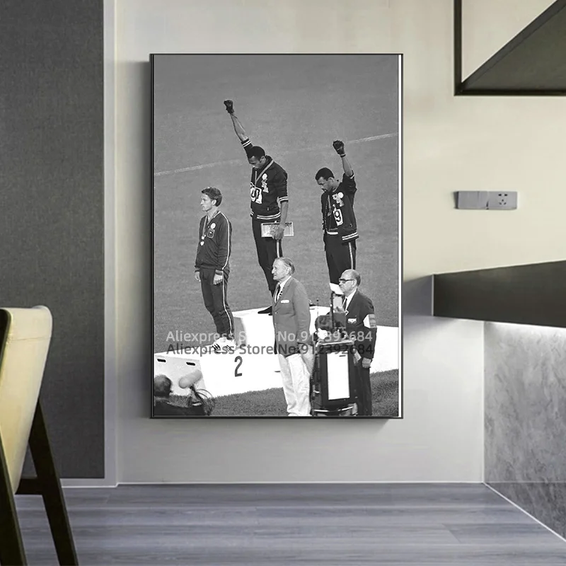 Художественный плакат на холсте, черная олимпийка, сила салюта, Настенная картина, современный классный декор для кухни, семейной спальни, 1968