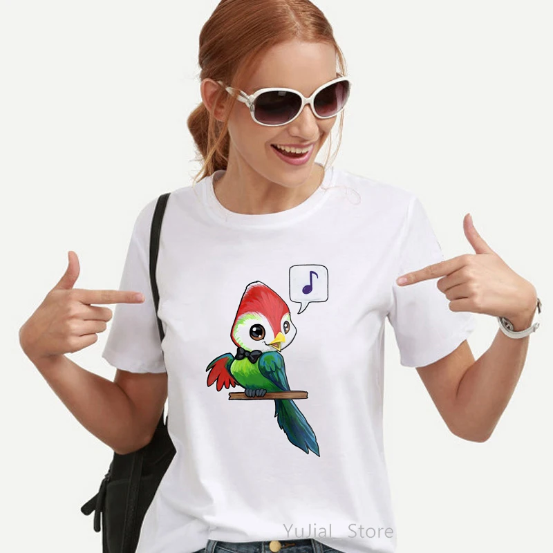 Женская футболка с акварельным принтом кокатила, попугая, птицы, забавная футболка с авокадо, Женская милая одежда в стиле Харадзюку, белая женская футболка