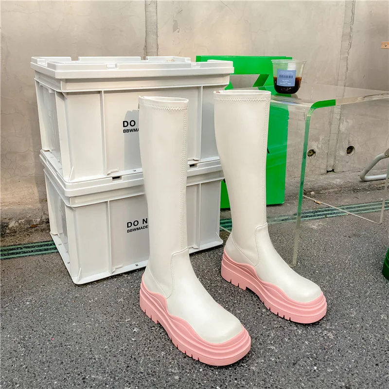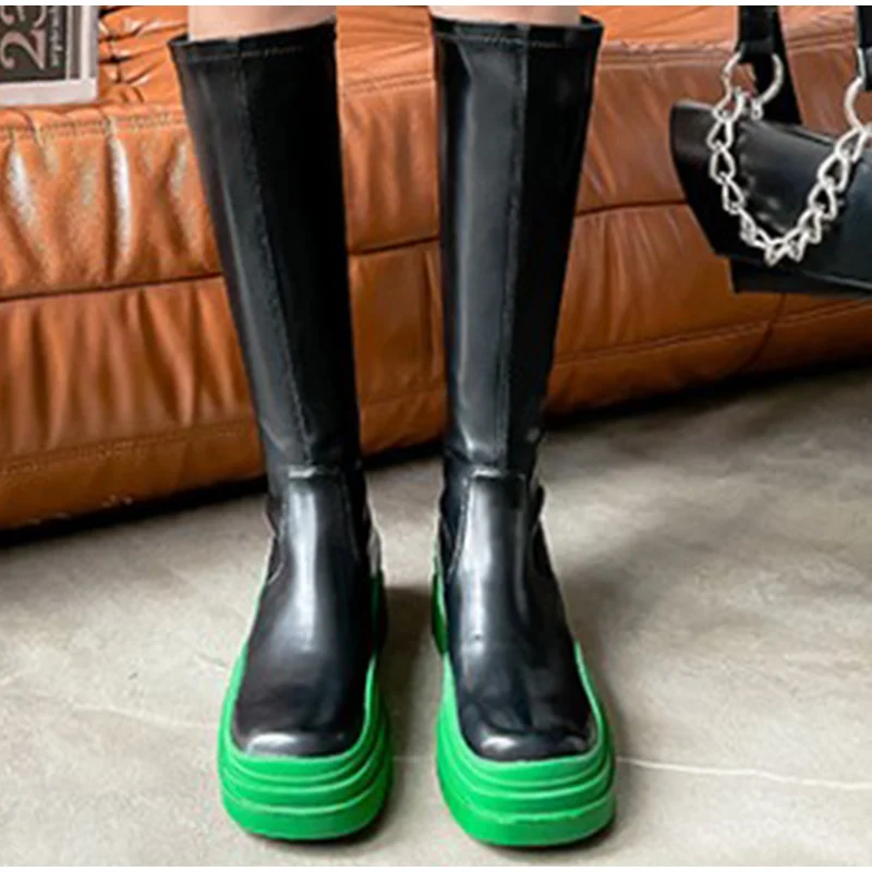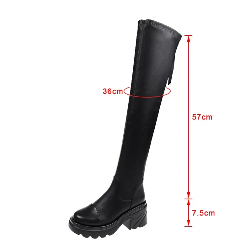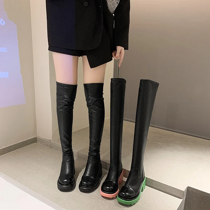 Женские осенние сапоги выше колена, женские сапоги из искусственной кожи на блочном каблуке и платформе, Женские однотонные модные длинные сапоги на молнии