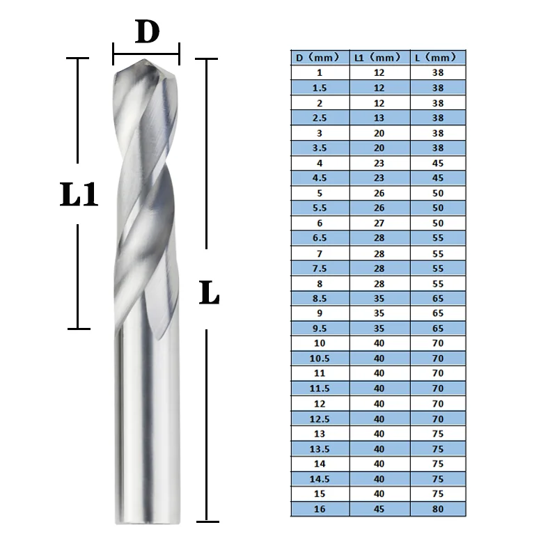 Сверла карбида вольфрама спецификации 1,0 мм-20 мм для сверления металла острые без заусенцев