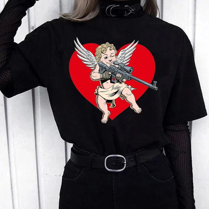 Футболка женская с забавным купидоном, модная тенниска с графическим принтом, Стильная майка в стиле Харадзюку, с коротким рукавом