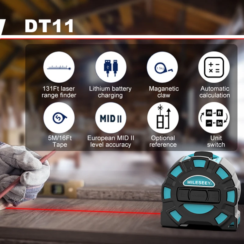 Mileseey DT11 лазерная измерительная лента 40 м перезаряжаемая 2-в-1 выдвижной цифровой дальномер метрическийимперский для домашнего измерения