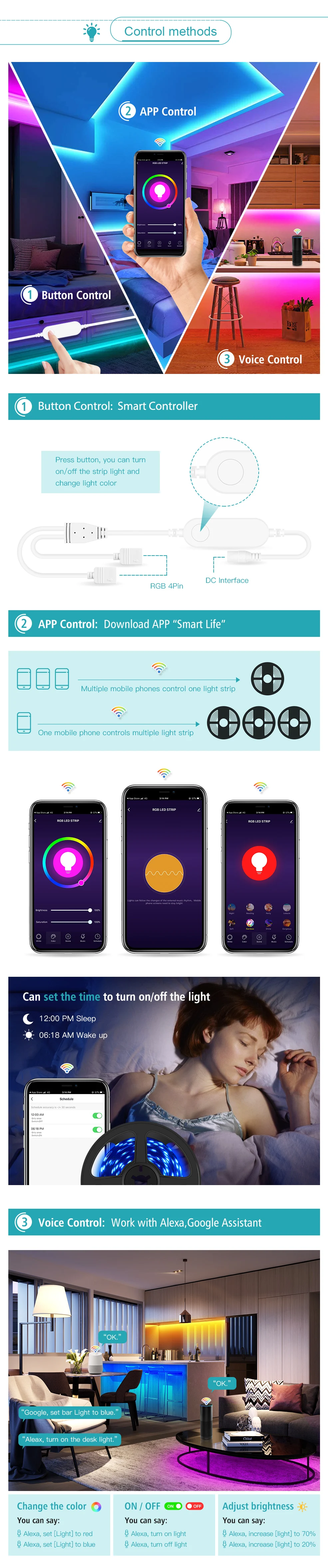 Светодиодная лента Tuya Smart Life, контроллер света, Wi-Fi, пульт ...
