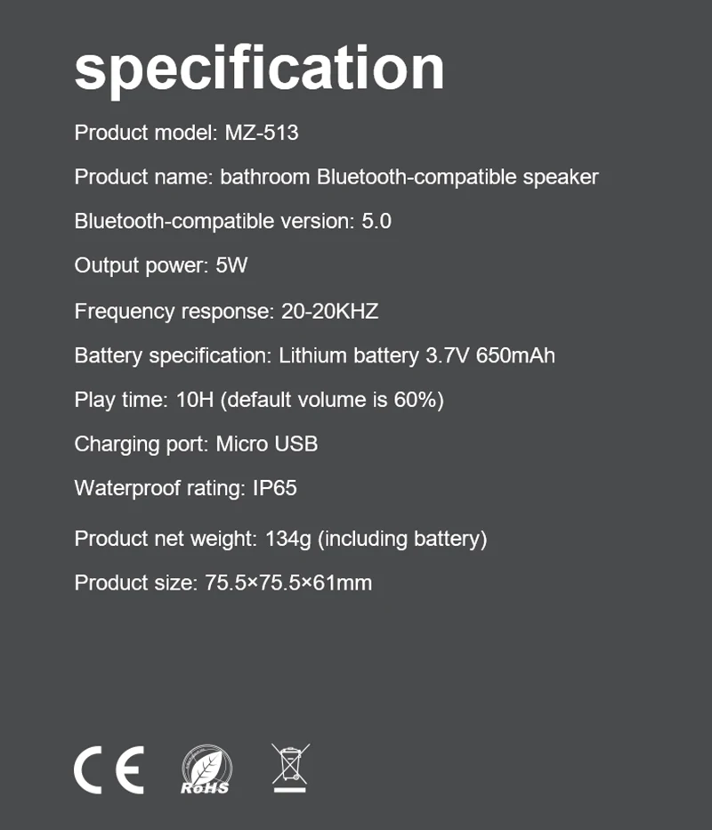 1 * динамик (с присоской сзади) 1 * зарядный кабель