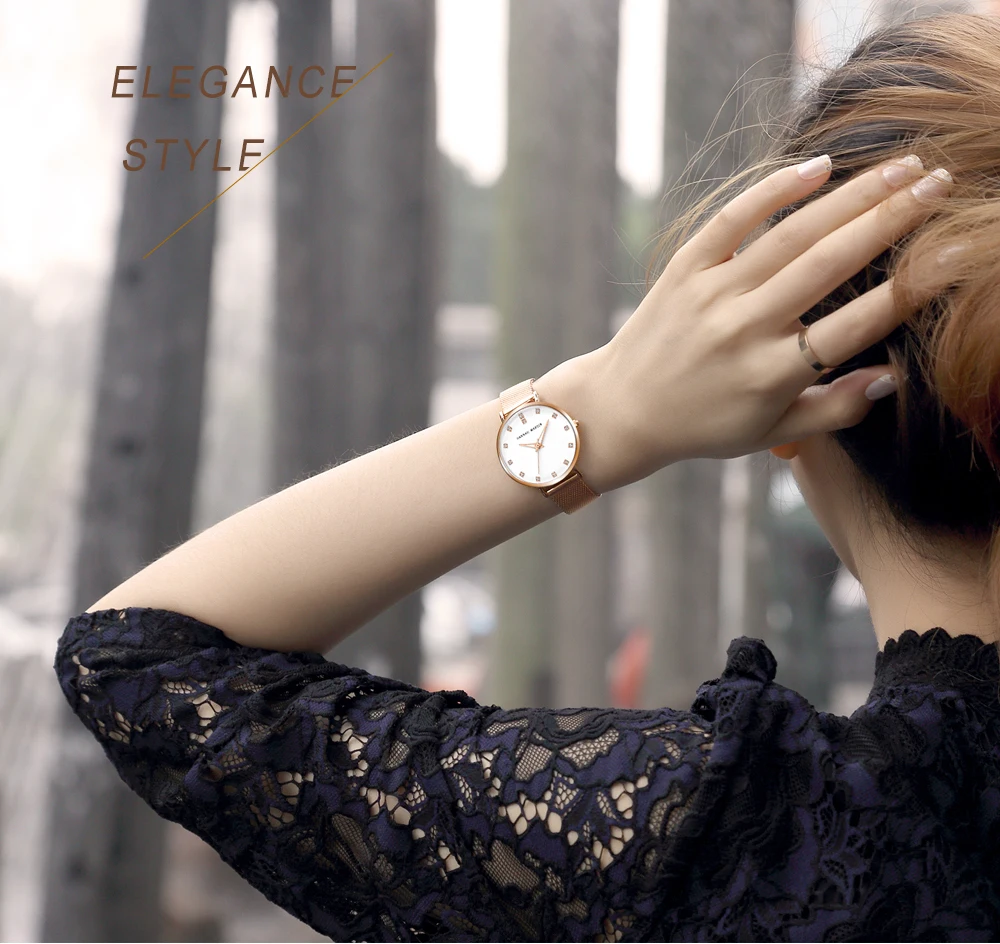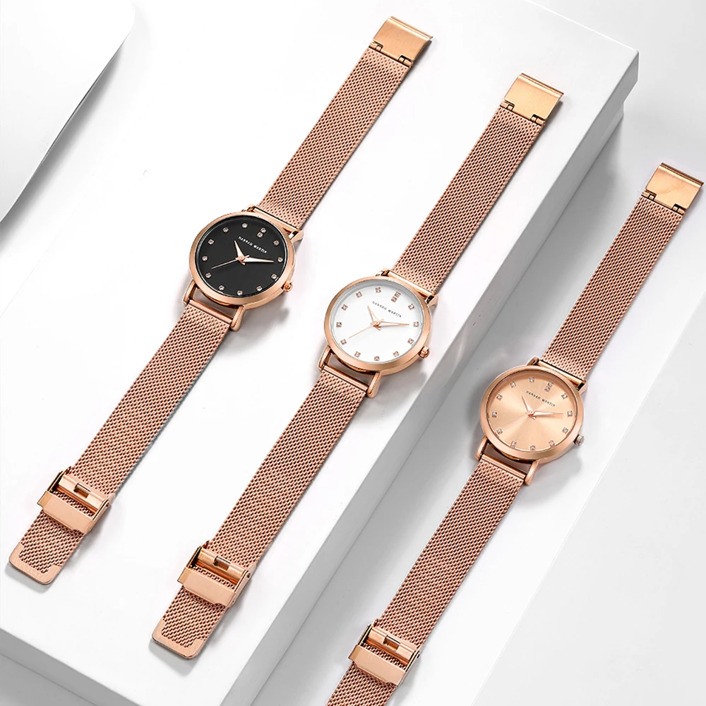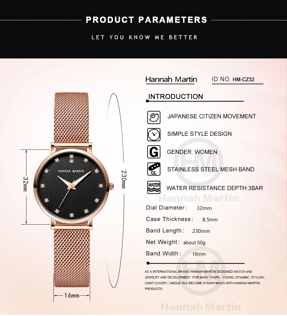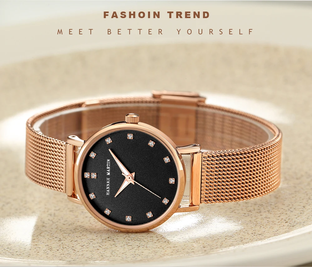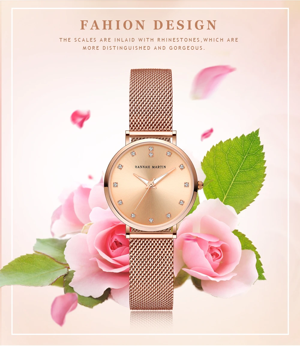 Женские кварцевые часы Hannah Martin, японские часы MIYOTA 2035 с сетчатым браслетом из нержавеющей стали, водонепроницаемые часы цвета розового золота для женщин