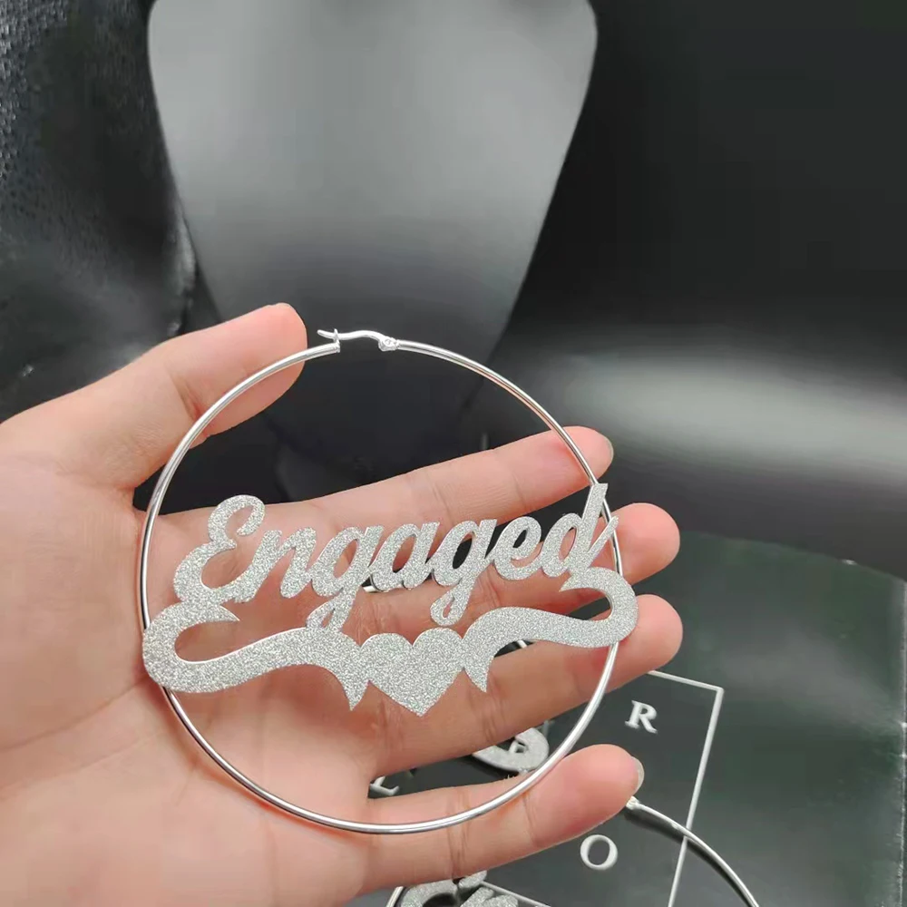 LUER 30-100 мм индивидуальные именные серьги-кольца, персонализированные большие серьги из нержавеющей стали, красочный дизайн для женщин, хип-хоп, ювелирные изделия, подарок