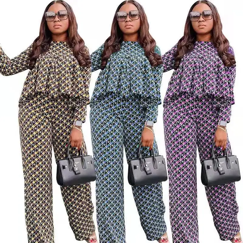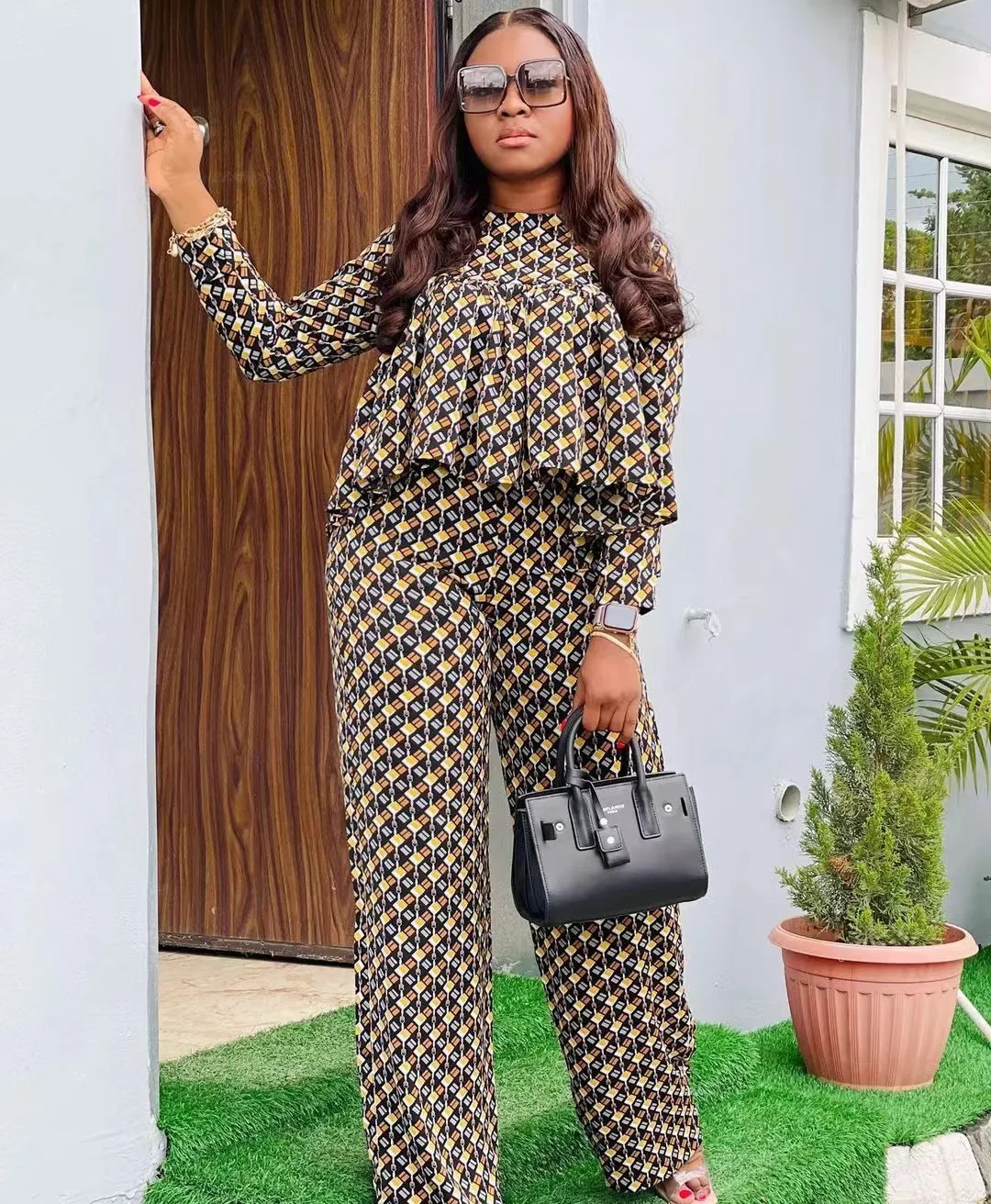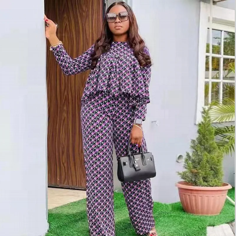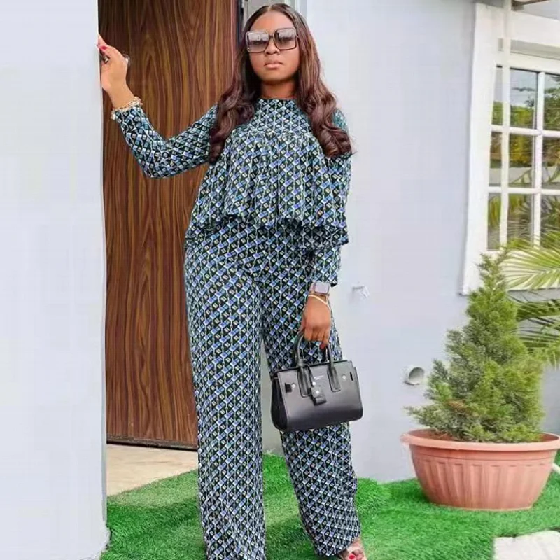 Женский комплект одежды из 2 предметов, Длинный топ и брюки в африк...