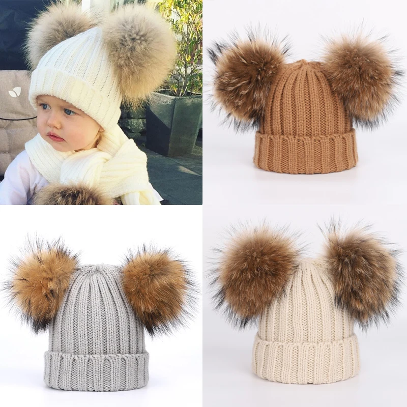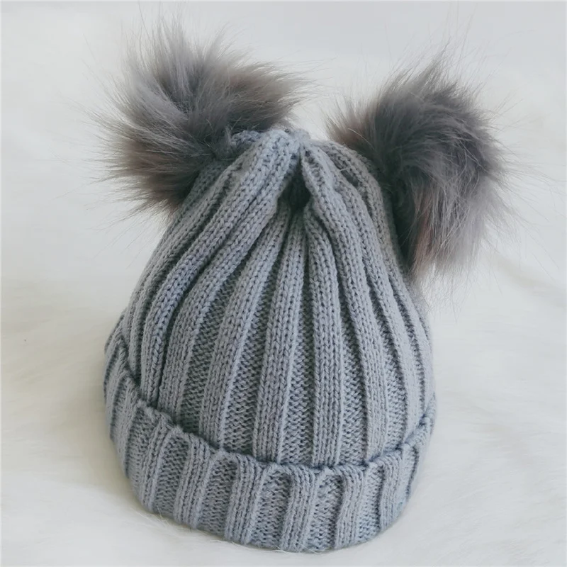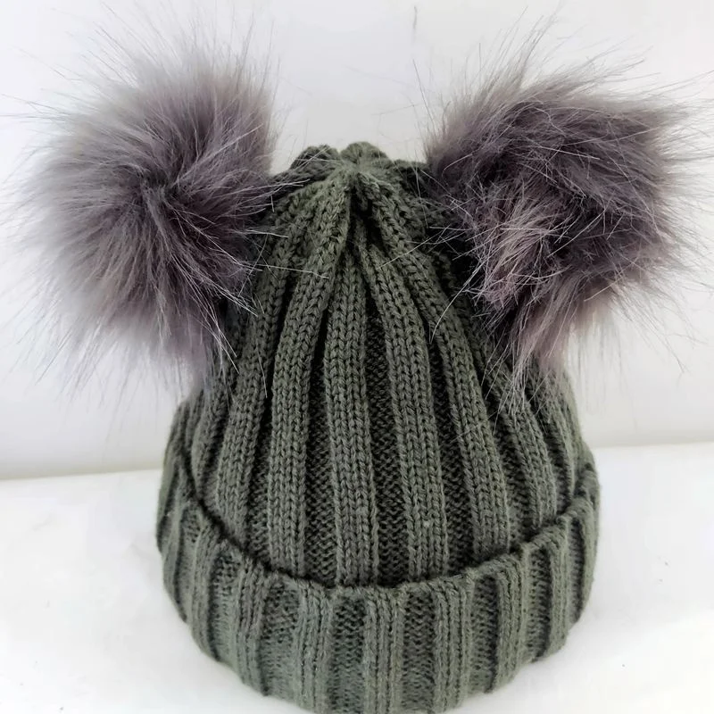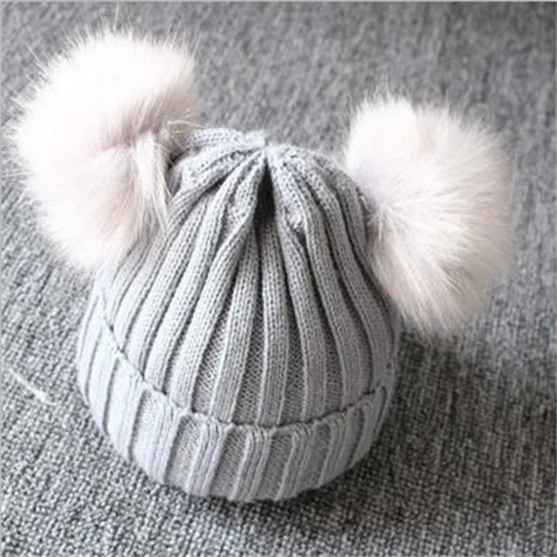 Зимняя теплая вязаная шапка для малышей, детей, девочек, мальчиков, пушистые шарики, помпон, однотонная теплая Милая шапочка, шапка, подарки, Детские аксессуары, шапочка