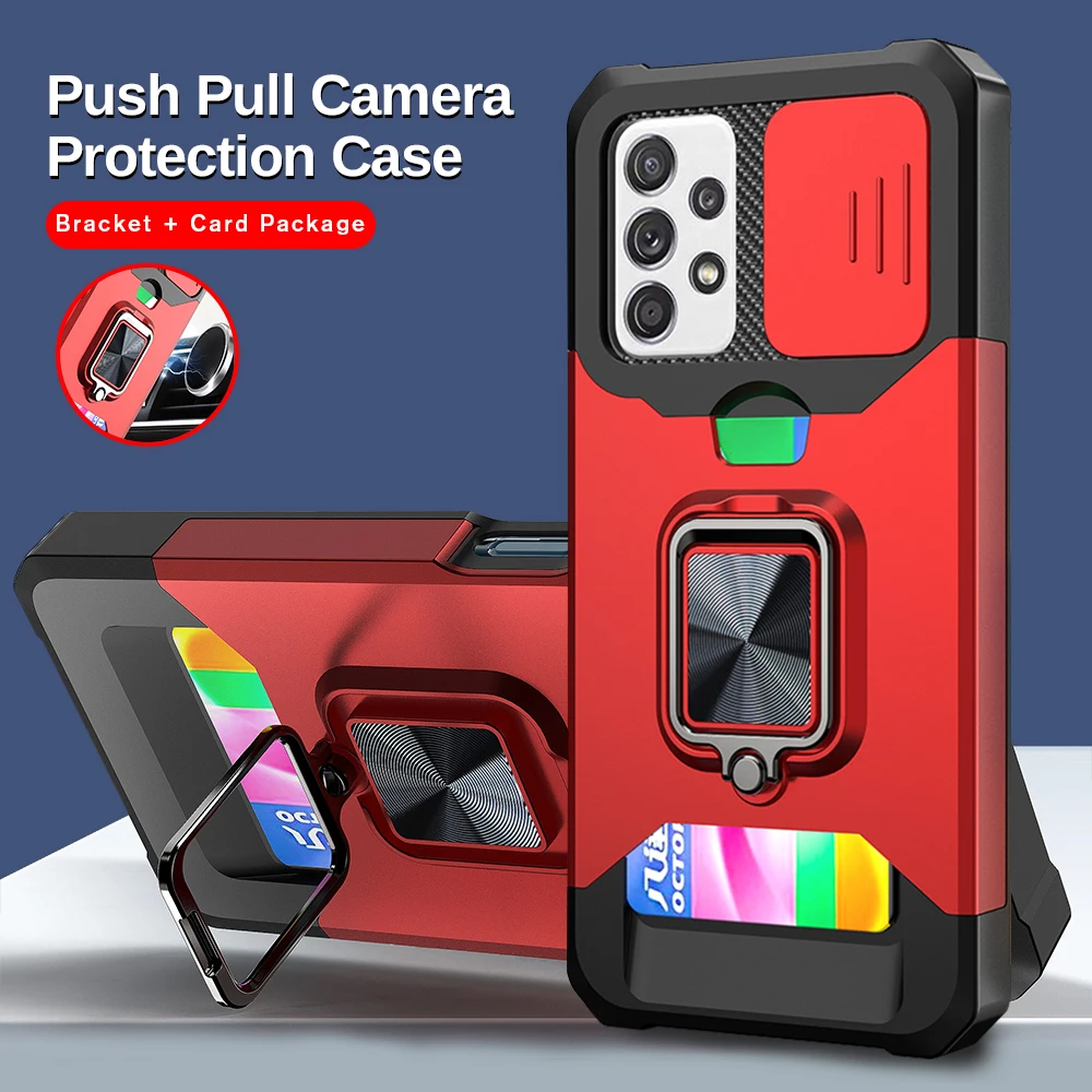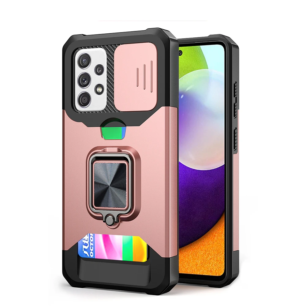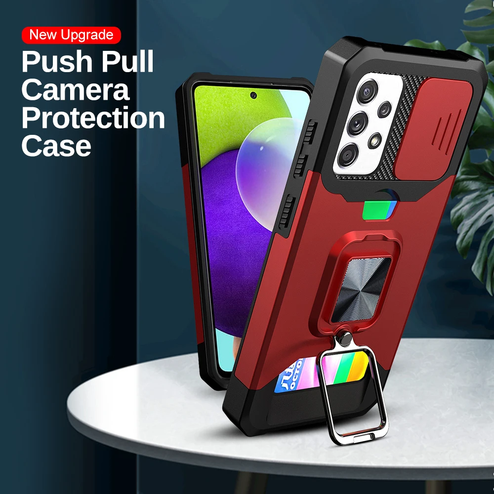 Противоударный чехол с кольцом-подставкой для Samsung Galaxy A52 4G 5G 2 в 1, слот для карт, бумажник, нажимная задняя крышка для Samsung A52s A 52, чехол