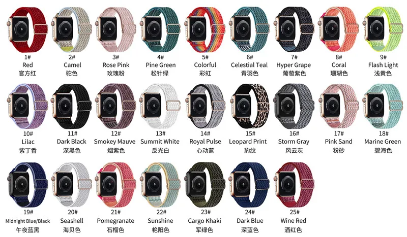 【Мягкий и легкий светильник 】 эластичный полиэфирный материал приятный для кожи и мягкий, в отличие от металла, слишком тяжелый, все эти эластичные резинки для часов apple имеют вес, светильник И легко надевать и снимать, как спортивный ремешок поставляется с apple watch, также когда эта полиэстерная лента промокает, Она высыхает быстрее, чем нейлоновый материал.