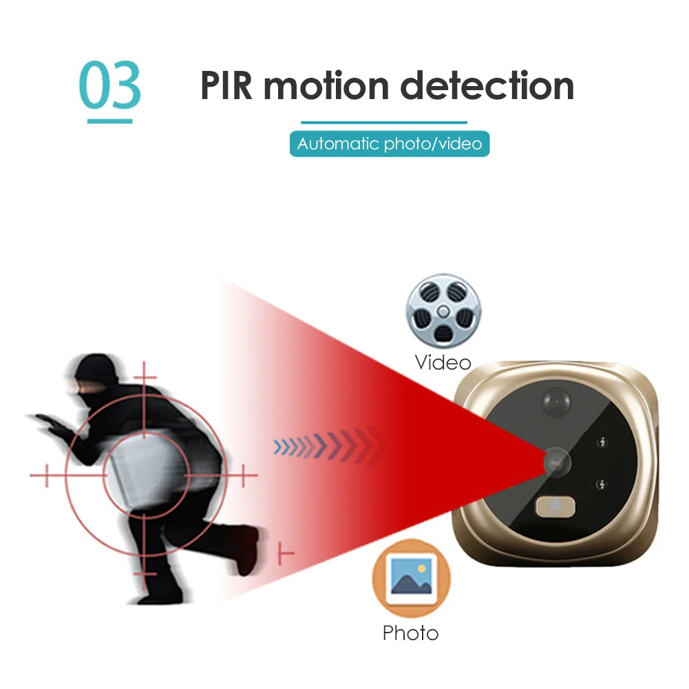 D1 умный дверной звонок с ЖК-экраном, электронное ночное видение, датчик движения, глазок, видео, Домашняя безопасность, Цифровой зритель, дверной звонок