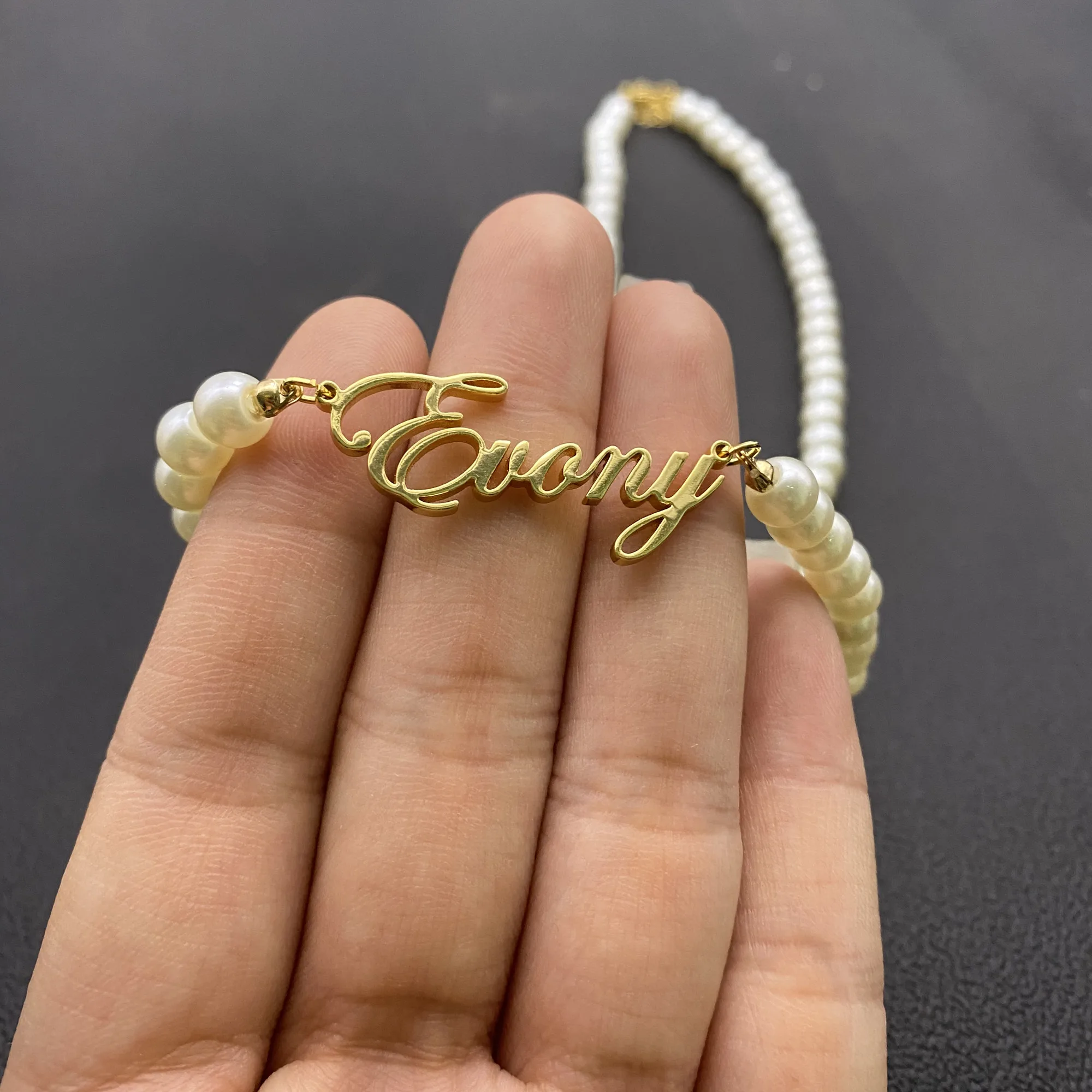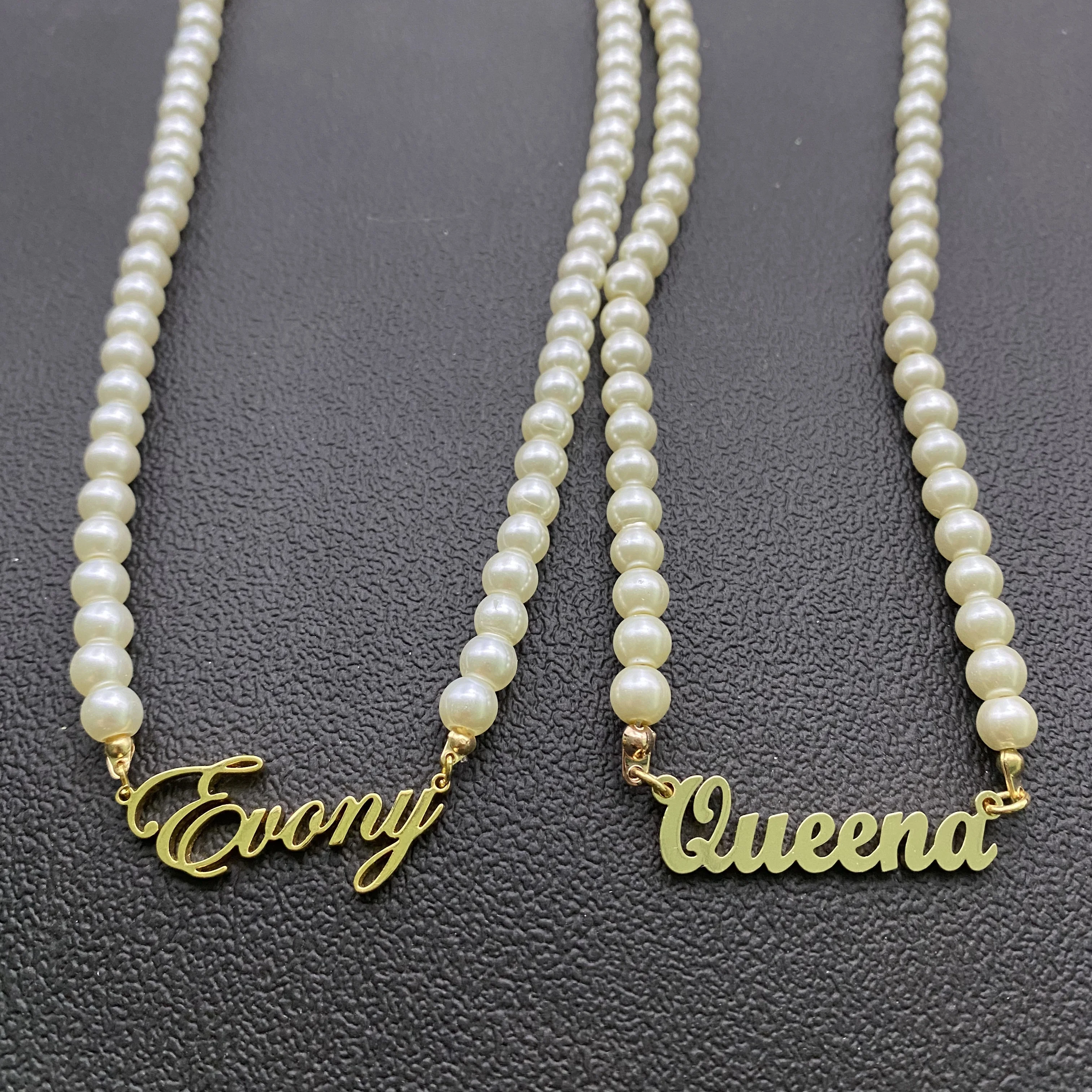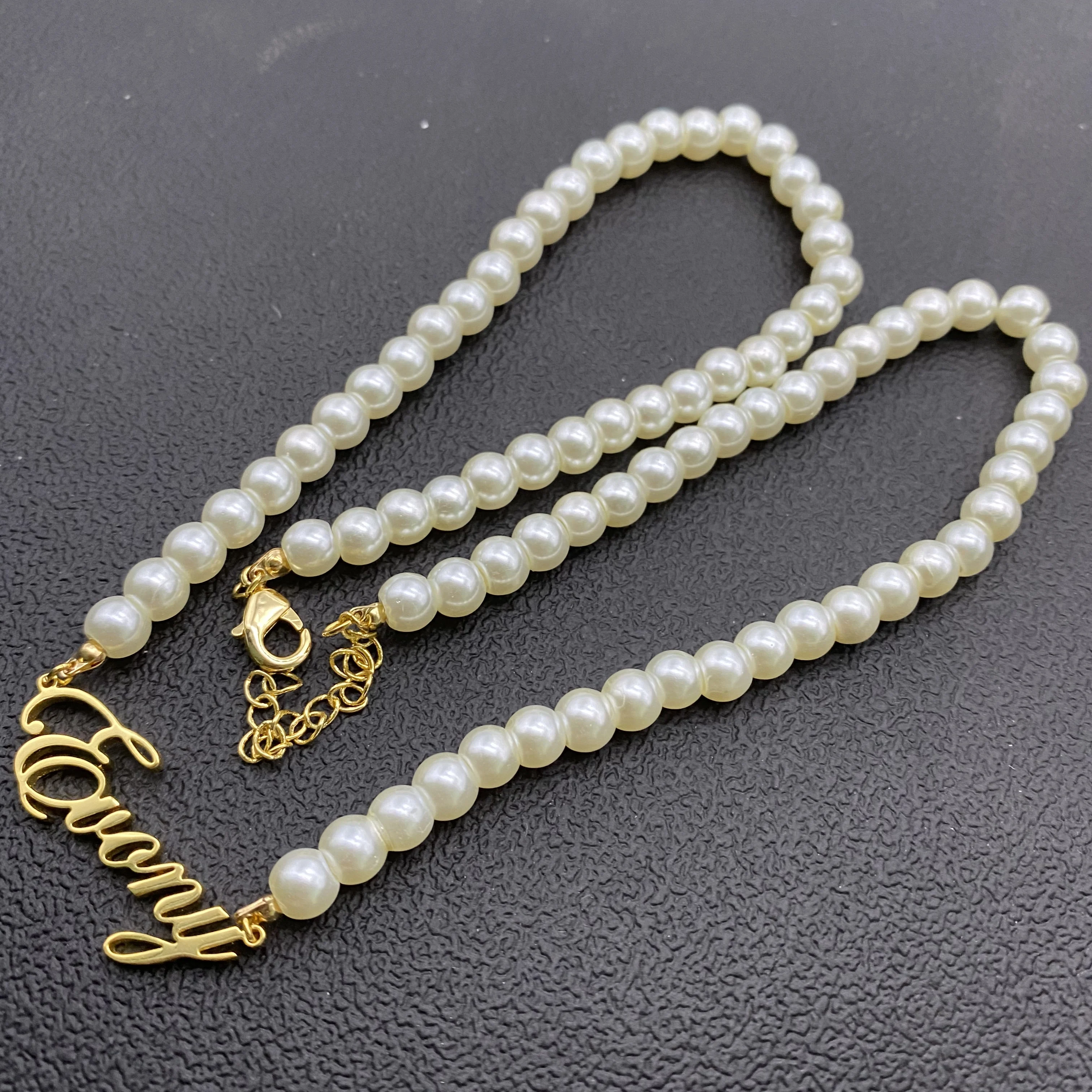 Жемчужное ожерелье с именем на заказ, жемчужное ожерелье, чокер с кулоном из нержавеющей стали на заказ, женские жемчужные ожерелья, ювелирные изделия, подарки