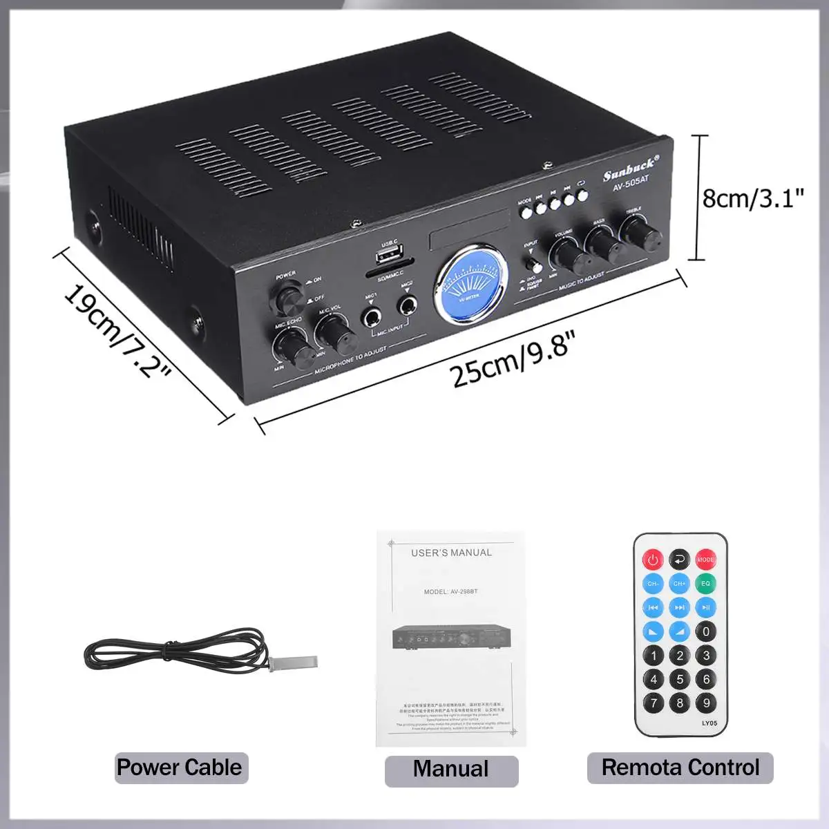 Усилитель мощности аудио HiFi 2500 Вт, поддержка Bluetooth для Домашнего Караоке, поддержка FM-радио, AUX-вход, USBSD, с дистанционным управлением