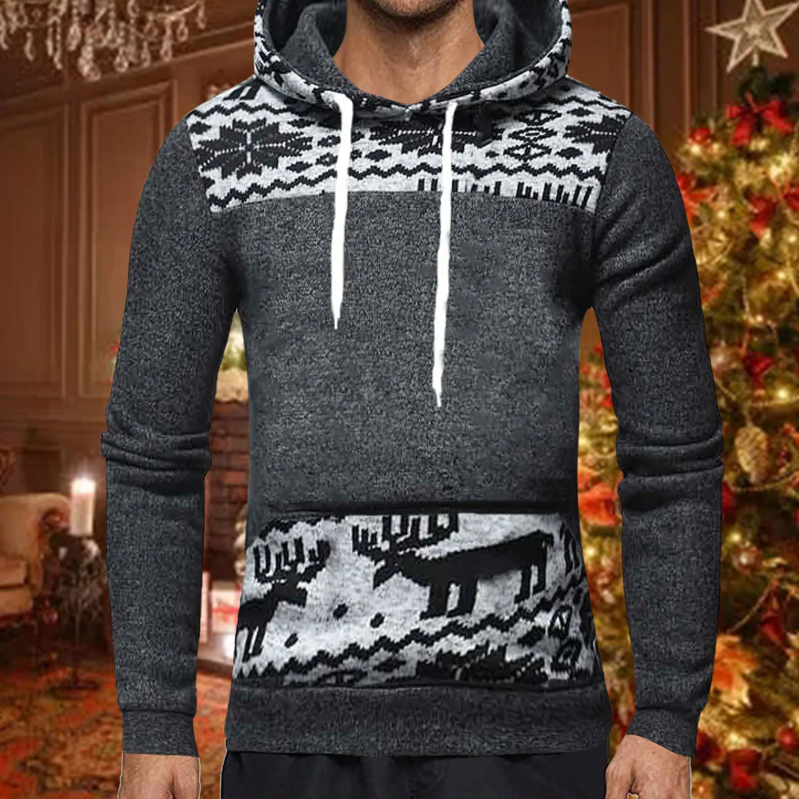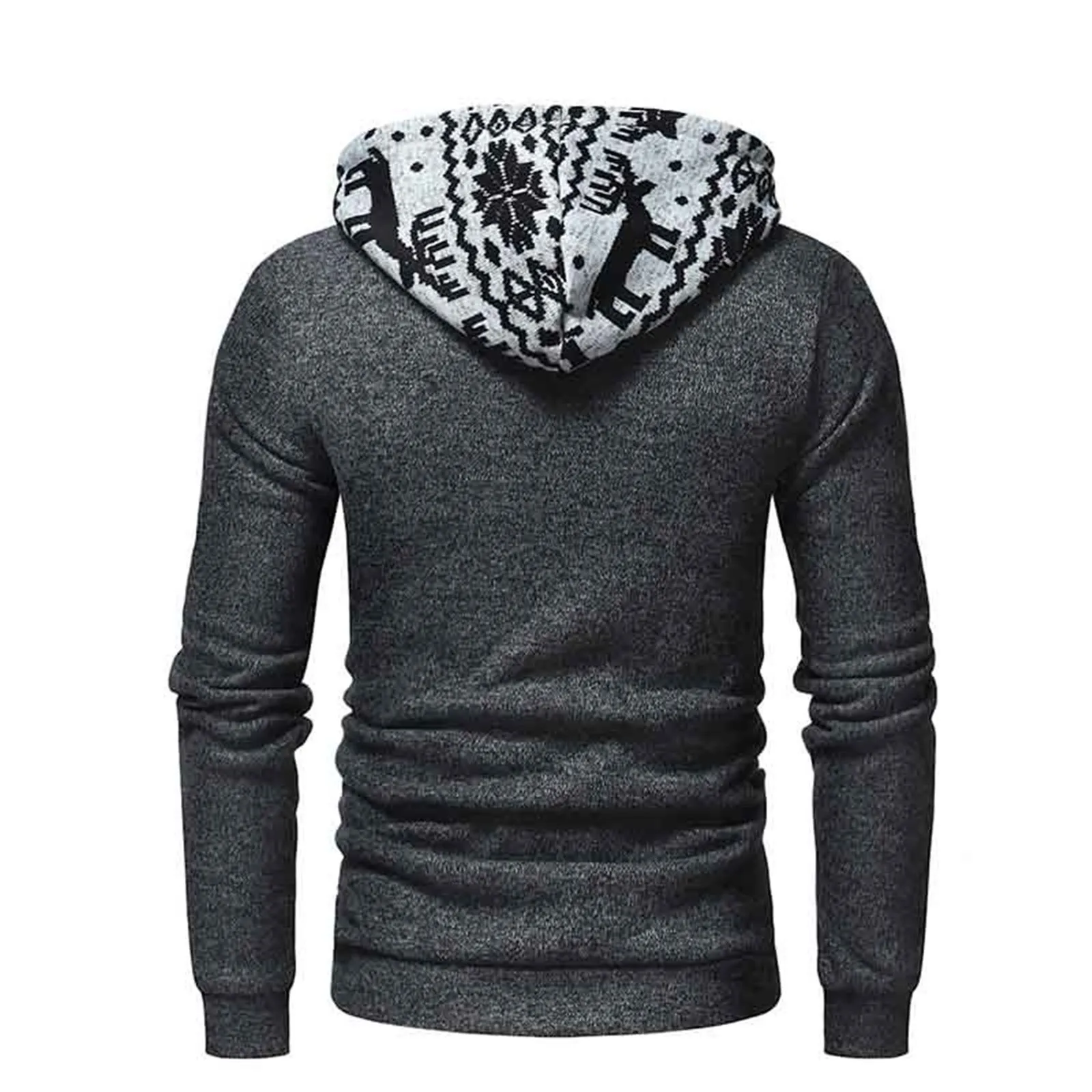 Мужские Осенне-зимняя Рождественская футболка с длинными рукавами и капюшоном в стиле пэчворк