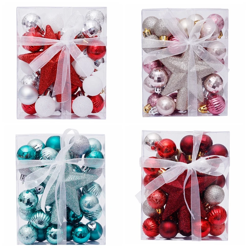 30 шт.компл. Рождественские шары с верхней елкой, блестящие звезды,...