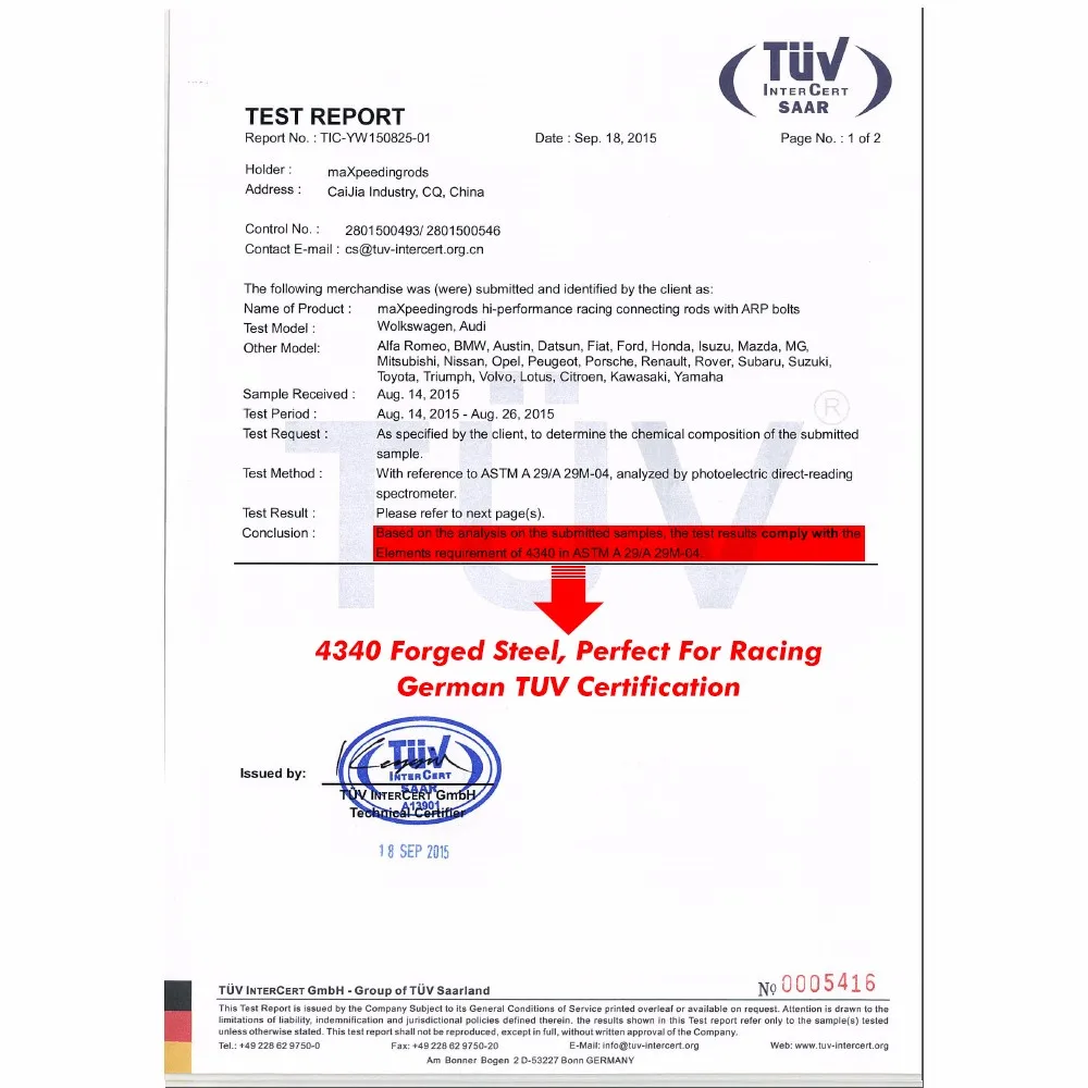 ПараметрыКоличество: 4 штуки в комплектеБолты: Включая настоящие 3/8 "ARP 2000 болты (Примечание: дополнительные расходы на обновление до ARP L19 болты)Материал: Кованая 4340 летательная Хромовая молистая качественная сталь для гонокДопуск по весу: сбалансированный до +/- 1 г в комплекте