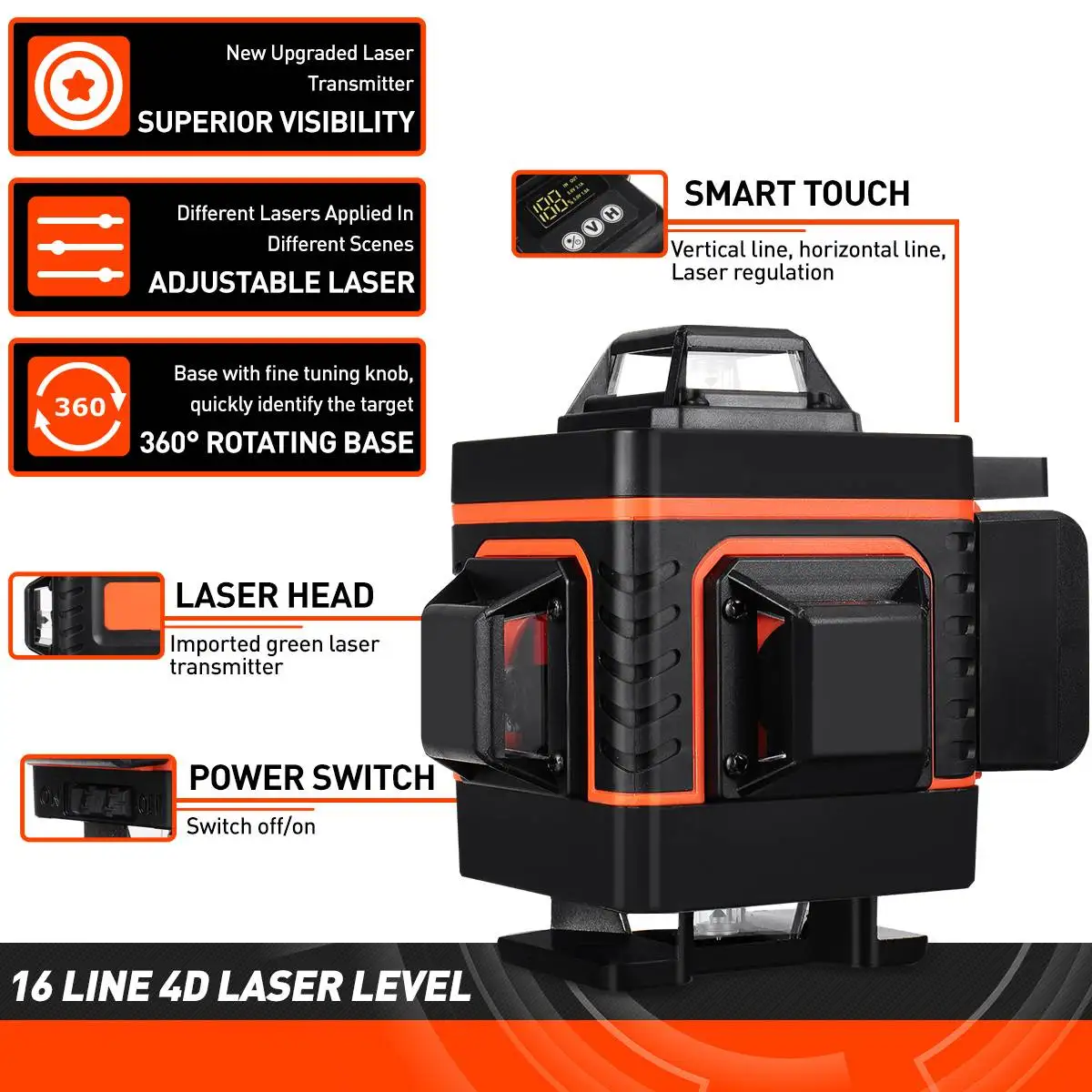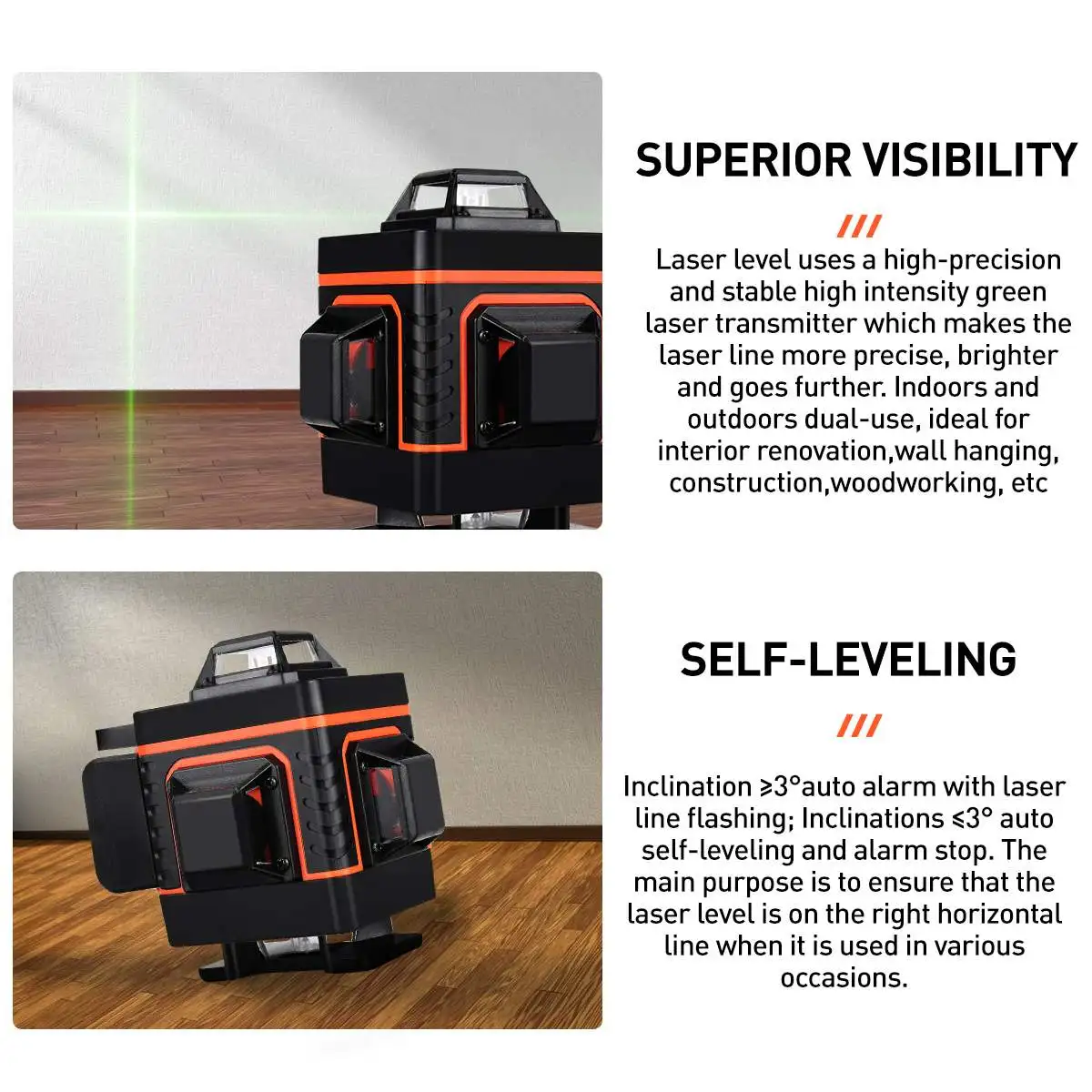 7. Функция автоматического самовыравнивания ± 3 °. Когда диапазон автоматического выравнивания превышен, будет издано звуковое предупреждение.