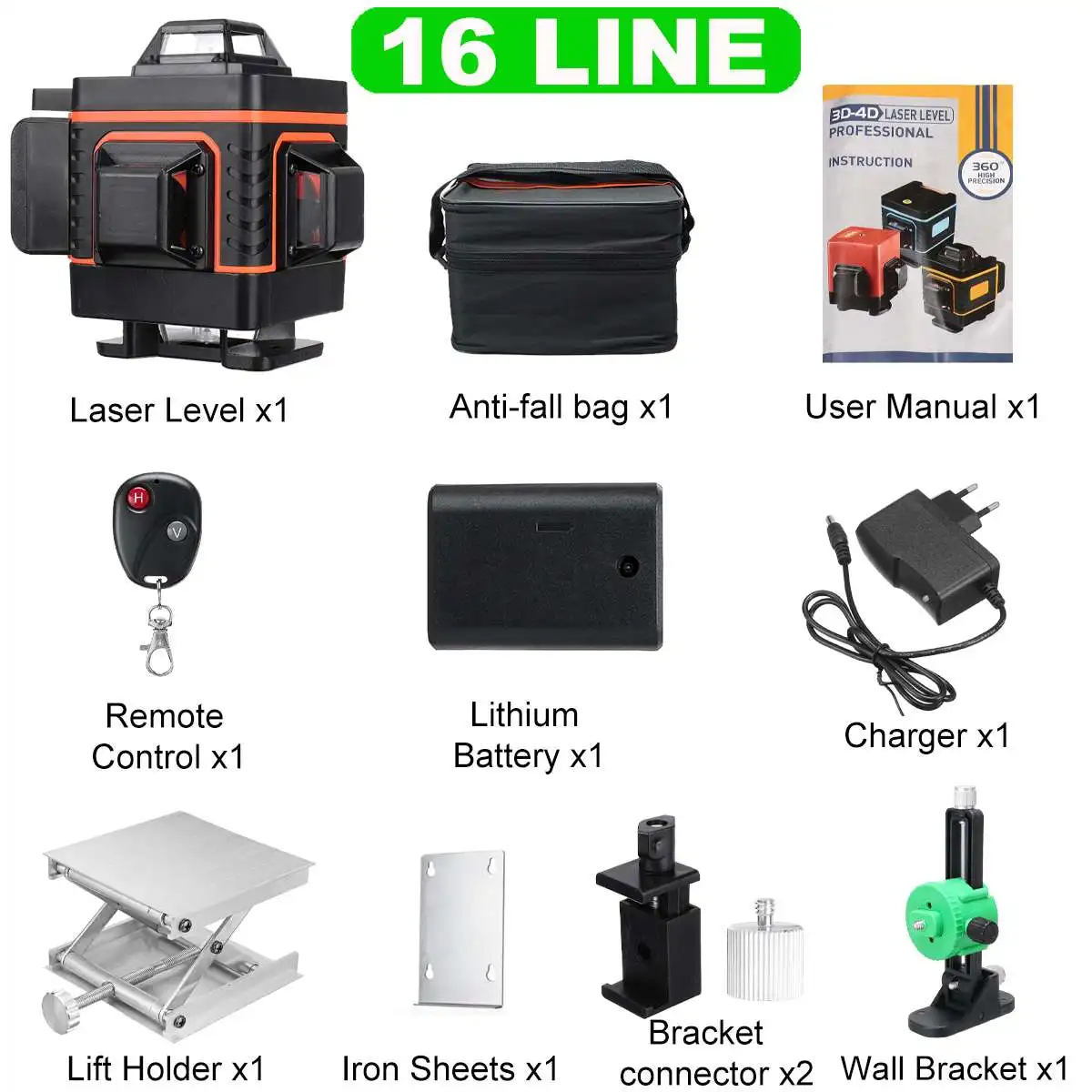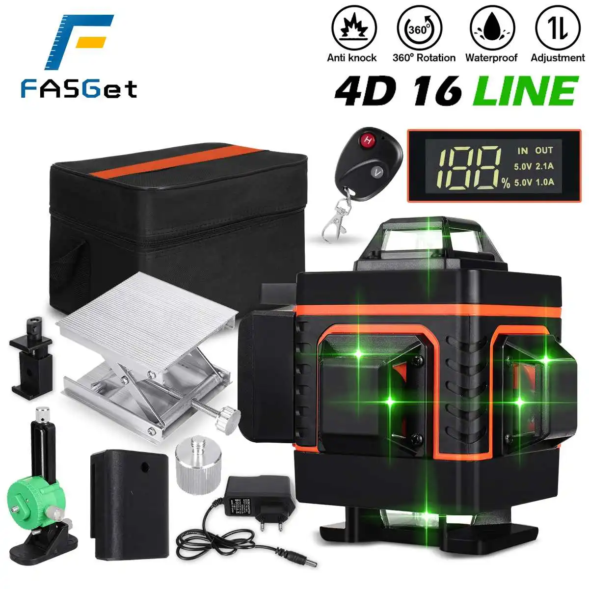 Лазерный уровень FASGet 3D 4D, 12, 16 линий, горизонтальный и вертикальный перекрестный супермощный автоматический самонивелирующийся лазерный уровень с зелеными линиями