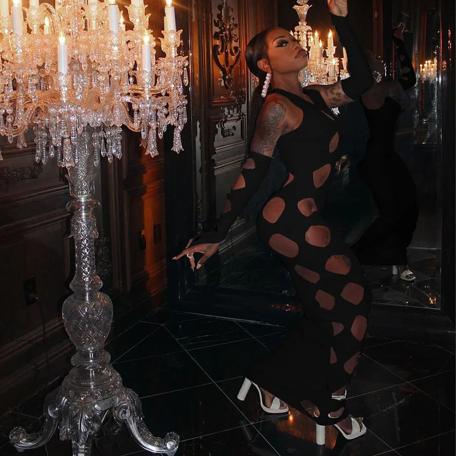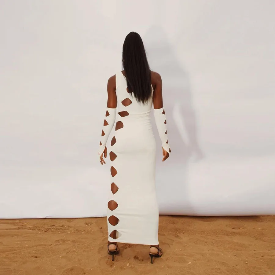 Женское платье в полуночном стиле Sisterlinda, комплект из 2 предметов, обтягивающие перчатки неправильной формы + платье, Клубная одежда для вечерние