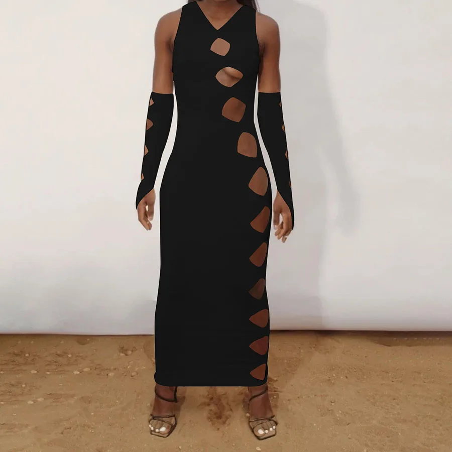 Женское длинное платье, однотонное, с вырезами, без рукавов
