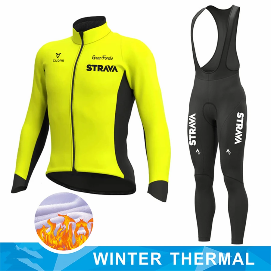 Зимний теплый флисовый комплект Strava, одежда для велоспорта, мужской костюм из Джерси, спортивная одежда для езды на велосипеде и горном велосипеде, комплекты с комбинезоном, одежда для велоспорта