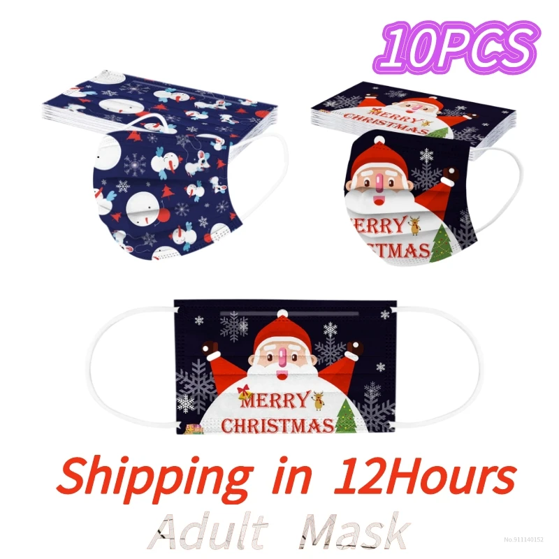 10pcs Christmas Adult Universal Disposable High-quality Printed Mas...