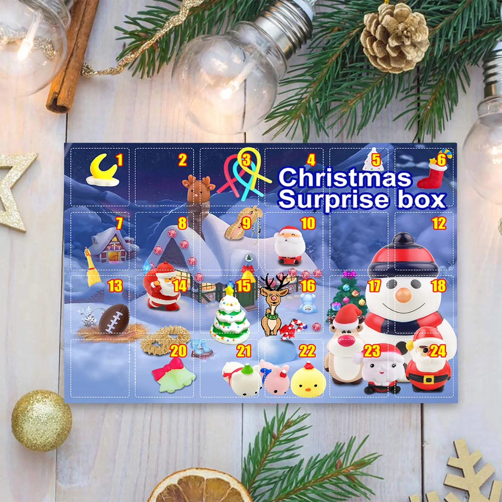Календарь для приёма 2021 - 24 дня сюрпризов фиджет-игрушки оптом рождественские праздничные календари с обратным отсчётом для приёма с 24 маленькими дверцами