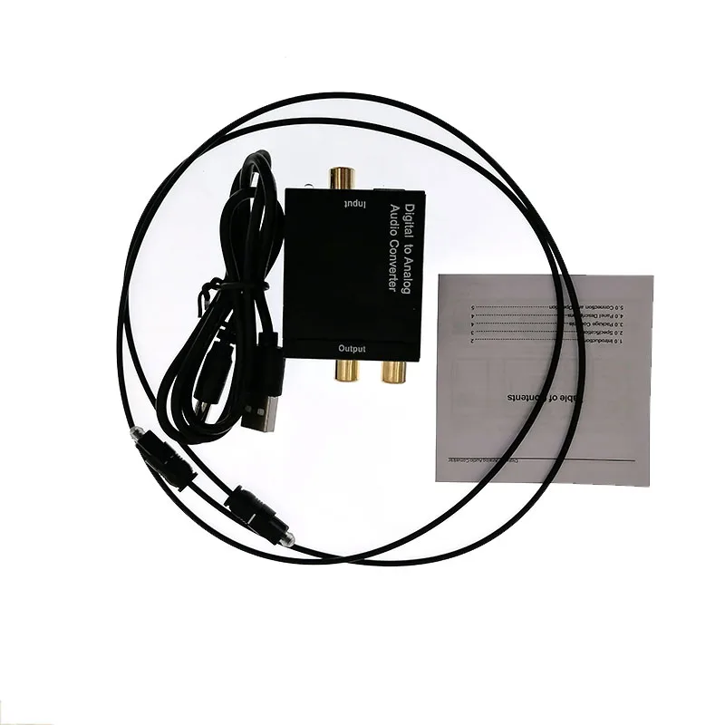 Он преобразует коаксиальные или Toslink цифровые аудиосигналы в аналоговый стерео аудио L/R и доступен для подключения к внешнему устройству, например, усилитель через стандартные разъемы в стиле RCA.