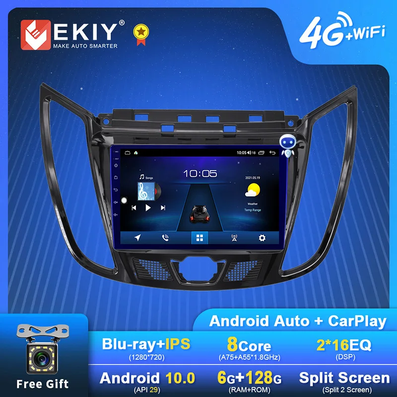 Автомобильное радио EKIY Blu-Ray IPS для FORD C-Max Kuga Escape 2010 +, Android 10,0, мультимедийное стерео, Автомобильное видео, Carplay, плеер