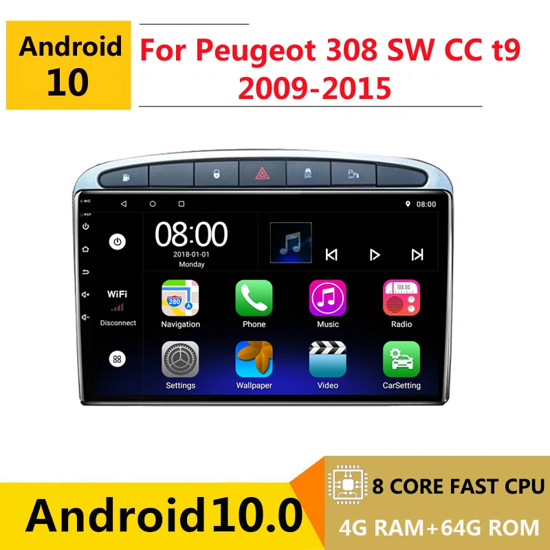 8-ядерный автомобильный DVD мультимедийный плеер Android 10 GPS для Peugeot 308 sw cc t9 RZC 2008 09 10 11 - 2015 Радио Аудио Стерео навигация