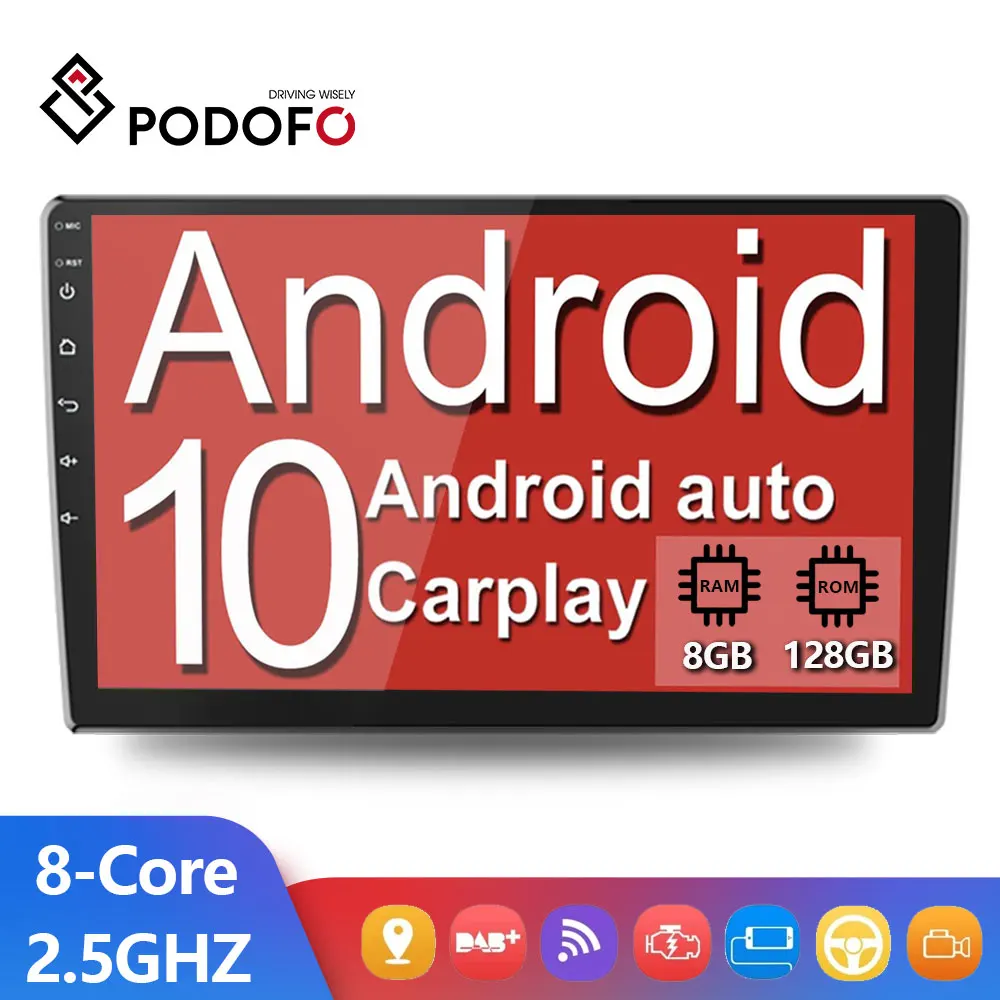 Автомобильный мультимедийный видеоплеер Podofo, 2DIN, 8 ГБ + 128 ГБ, AndroidWince, 710, 1 дюйм, универсальный автомобильный радиоприемник, GPS-навигация, Wi-Fi, MP5-плеер