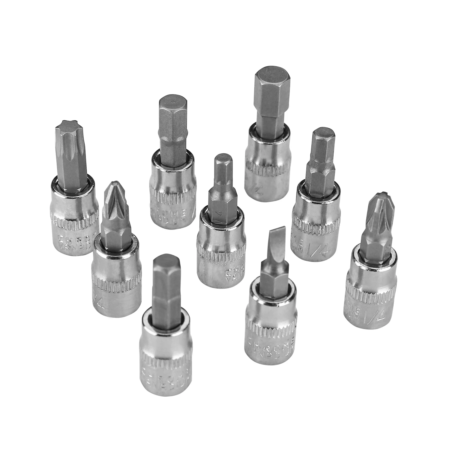 21 шт. биты: Плоские: 4, 5.5, 7 PH: 1, 2, 3 PZ: 1, 2 T: 10, 15, 20, 25, 30, 40 H: 3, 4, 5, 6, 7, 8 1 шт. Насадка для головок. 13 шт. Торцевые головки 4мм., 4,5мм., 5мм., 5,5мм., 6мм., 7мм., 8мм., 9мм., 10мм., 11мм., 12мм., 13мм.,14мм. 4 шт. Ключи имбусовые (шестигранные) 1,5мм., 2мм., 2,5мм. 1 шт. Отвертка для бит 150 мм. 1 шт. Шарнир карданный для головок 1 шт. Вороток для головок 105мм. 2 шт. Удлинитель для головок 50мм., 100мм. 1 шт. Трещотка 150 мм. 1 шт. Гибкий удлинитель для головок 150 мм.