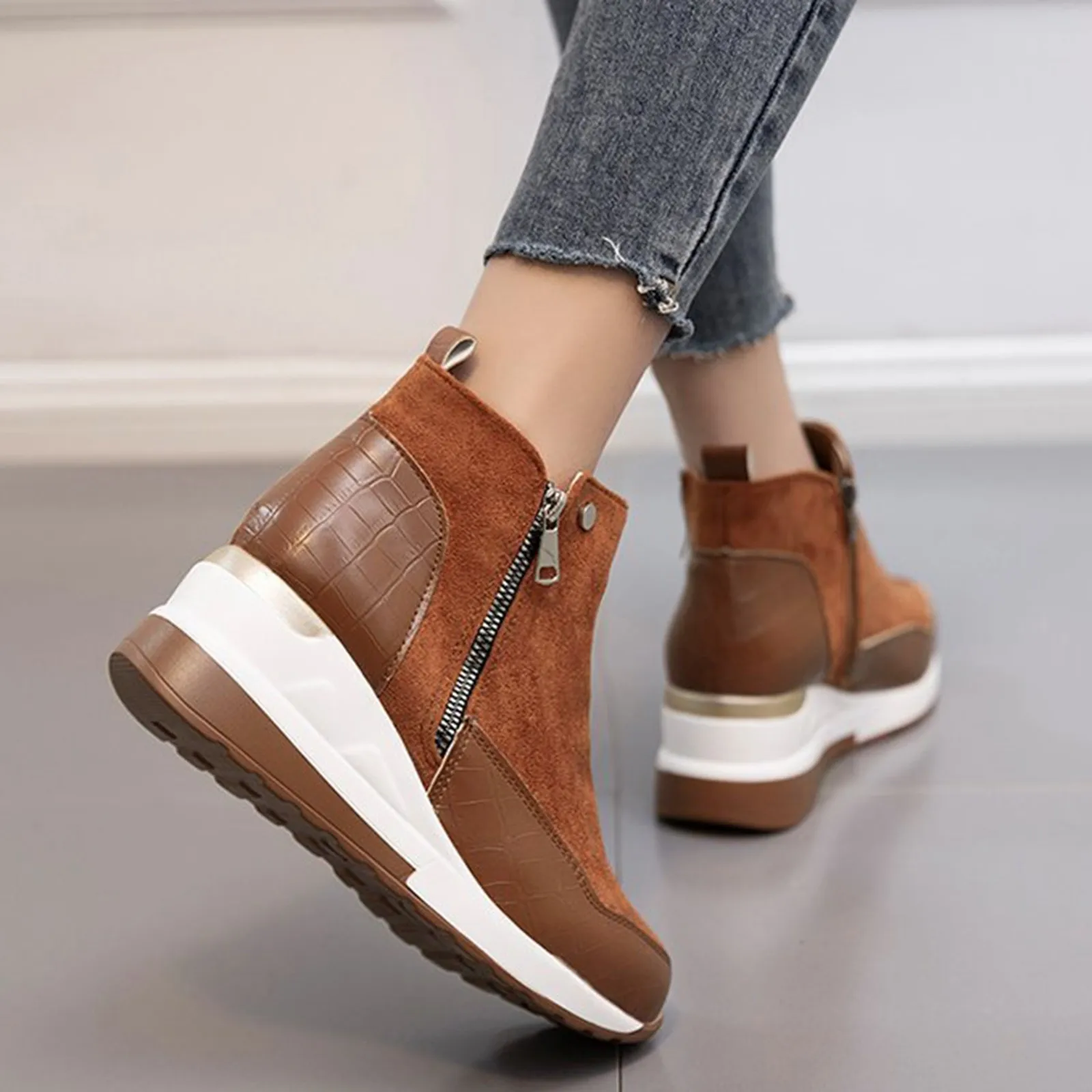 Модные женские ботинки, блестящие короткие ботинки на танкетке, на толстой подошве, с цветными вставками, с застежкой-молнией, Вулканизированная обувь, кроссовки #40